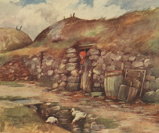 It has been remarked how the very superstitions of such a land run naturally to fishiness, as indeed all over the Hebrides uncouth leviathans haunt the fog banks, dragons lurk in the hollowed cliffs, sea-serpents in the voes as water-bulls in the lochans, and treacherously smiling mermaids, more to be shunned than all these monsters, delude men to their doom among slippery reefs. The mermaid legends may well have been suggested by half-human glimpses of seals. Our critical age is also disposed to relate them to occasional visits of Eskimo or Lapp adventurers, seen only to the waist in their skin canoes. Not so long ago there were people in the islands who boasted [201]descent from “Finn” strangers, very possibly kinsmen of an aboriginal pigmy race, Picts, “Pechts,” or what not, that may here have left their memory in the “Trows” or “Trolls” of land mythology, and their name in the Pentland (Pechtland) Firth.