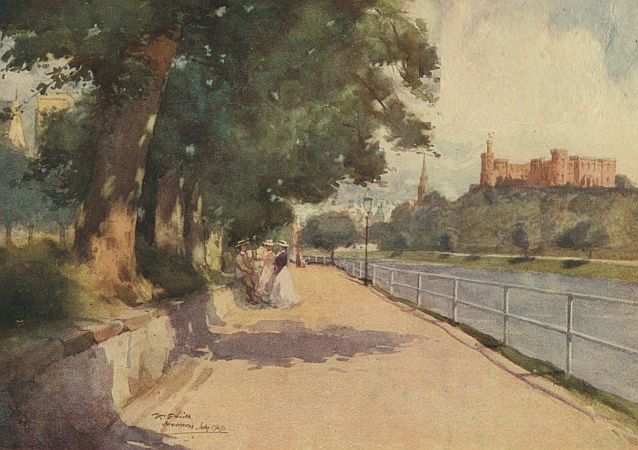 For leisurely tourists the choice road is still by water, down the Clyde from Glasgow. If the name of this river be derived, as is said, from a Celtic word meaning clean, that title has become a mockery, since its banks from Glasgow to Greenock sucked together the most industrious life of Scotland. “Come, bright Improvement, on the Car of Time!” sang Glasgow’s youthful poet, but lived to exclaim against the questionable shape in which came a spirit he had invoked so hopefully: