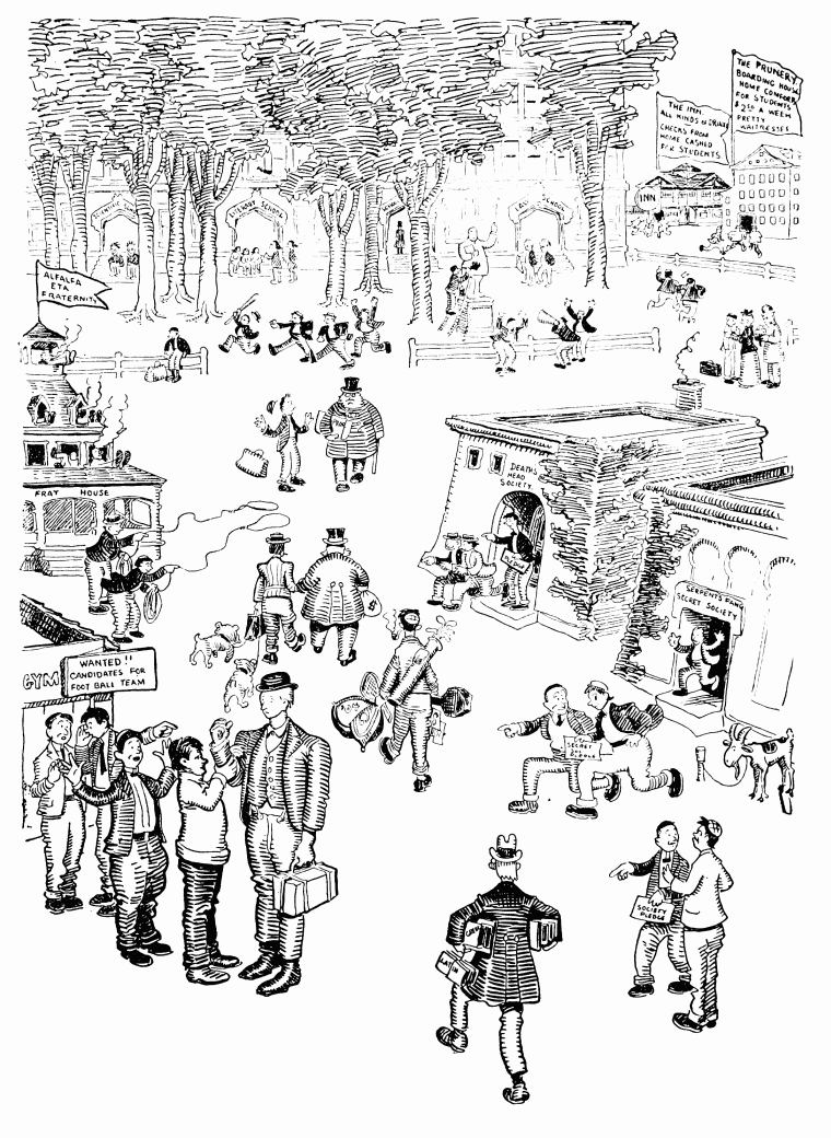 In Mr. McCutcheon’s cartoons we admire the clever execution, and the gentle humor which diffuses all of his work, but I dare say that more than all we admire him for his considerate treatment of public men and his blessed wisdom in getting away from the hackneyed political subjects and giving us a few pictures of that every-day life which is our real interest.