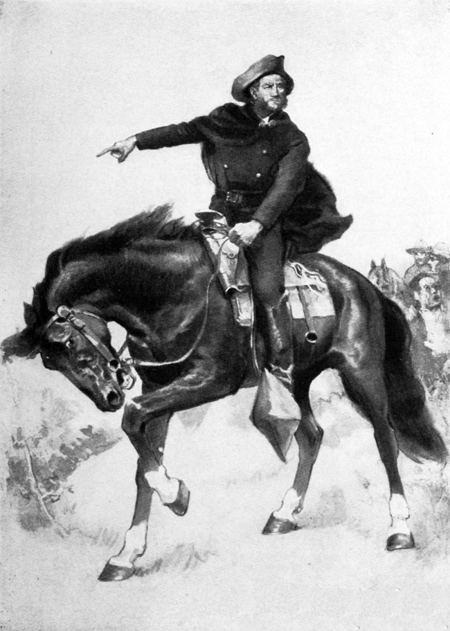 When he arose and advanced with a slight limp, a rousing round of cheers and yells and hand-clapping hailed him. He wore a suit of black broadcloth, with his sword belted about his waist. He was indeed thin, his face was seamed by suffering, but his great blue eyes flashed, and his voice pealed strong and vibrant as of yore.