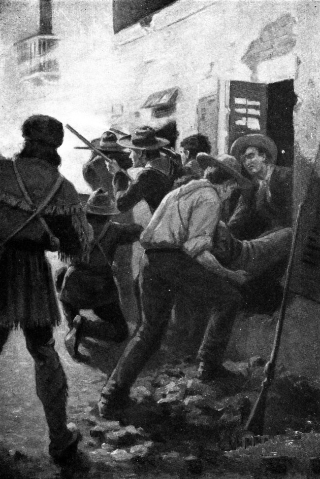 As for Ernest, he was granted land as a soldier of San Jacinto, and the day came at last when he could send for his mother. He built her a house with a court, too, like the court into which he and Jim had peeped, from the roof of the de la Garza house in Bejar. Here she grandly sat, among the flowers—and occasionally fed sugar, as a special treat, to lazy Duke, the graying old war-horse, while he and Ernest, and Jim and Leo and Sion, and Dick, on their visits, exchanged stories of the stirring days of ’35 and ’36; of the heroic Travis, Fannin, Jim Bowie, Bonham, Captain Dickinson, and all; and of “the general”—always their general—patient, energetic, far-seeing General Sam Houston.