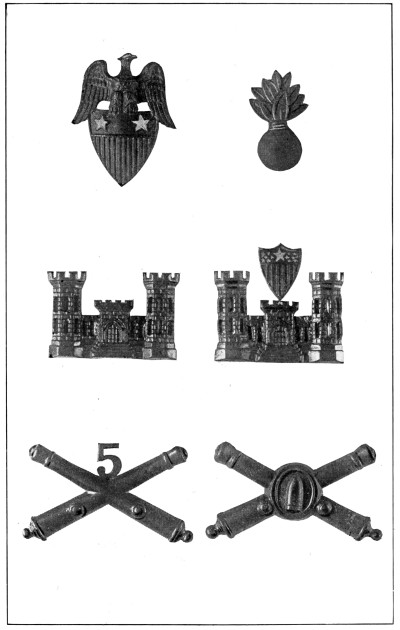 In the United States services there are also distinctive regimental and corps devices which, while indicating the branch and corps to which the wearer belongs, also keep alive the glorious traditions of the past wars.