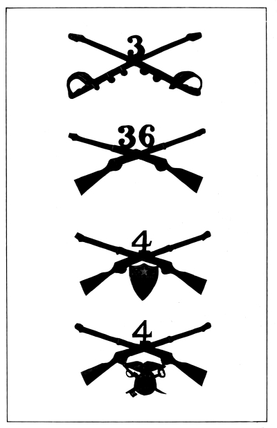 Such regimental badges, founded largely upon sentiment but still appealing mightily to the imagination of the young recruit that joins the colors with the high heart of youth, are a great aid to discipline and efficiency, since discipline means the implicit obedience on the part of every one in the service to the orders from higher authority in such a manner as to secure the greatest cohesion and coordination and hence the greatest effect. These little metal badges bearing the symbols [Pg 6] and mottoes that bring daily to the minds of their wearers the valorous deeds that their regiment has done in the past arouse the spirit of emulation and competition, the desire to fight as well or better than the old regiment fought on some other bloody field perhaps a century ago, and help to create esprit de corps—the soul of an army.