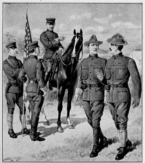 After the war with Spain in 1898 steps were taken to bring the uniforms of the several State National Guards into general conformity with that [Pg 10] of the Regular Army, and, with the granting of national financial aid to these state troops and the issue to them of government regulation clothing and equipment, all of the armed forces of the country, regular, state and volunteer, gradually came to wear the same uniform, the different kinds of troops being distinguished by the design of the buttons or by letters worn on the collars.