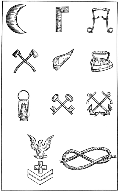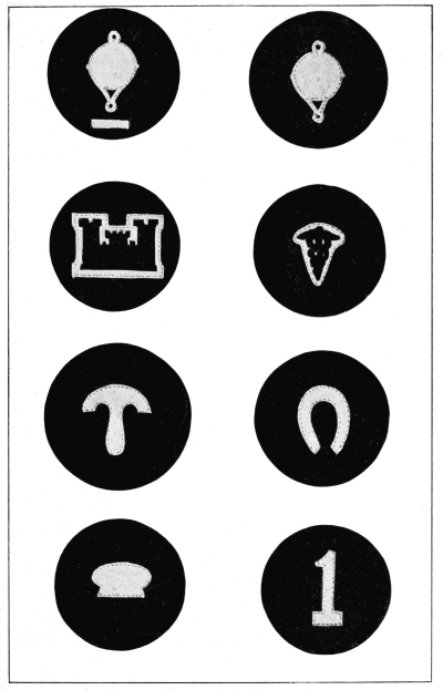 As time went by the leaders in command of the land forces perceived the necessity for some mark or badge to designate the members of their forces and to distinguish them from the foe. This resulted in the use of various distinctive badges, such as plumes of a certain color to be worn upon the helmet, initials, numbers or devices in the nature of a coat of arms to be worn upon the front of the helmet, on the breast plate of armor, on the tops of the shoulders or upon the shield, a custom which still prevails in the armies of to-day.