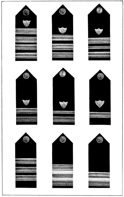 In the naval services of the world the adoption of a regulation uniform dress for officers and enlisted men came at a much later date than in the armies, although the marines, being essentially “sea soldiers,” followed the uniform regulations of the shore forces to a great extent and were put in uniform much earlier than the sailors of the ships’ crews.