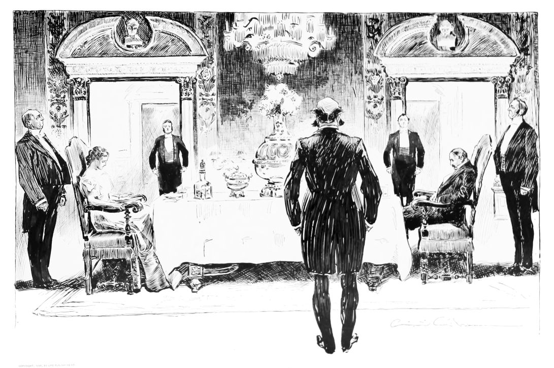 “Then put the baron through the usual course of questions, and, if satisfactory, put him on Maud’s eligible list. (To suitor) as soon as we can arrange the desirability of the various applicants we will let you know the result. Good-day, sir.”