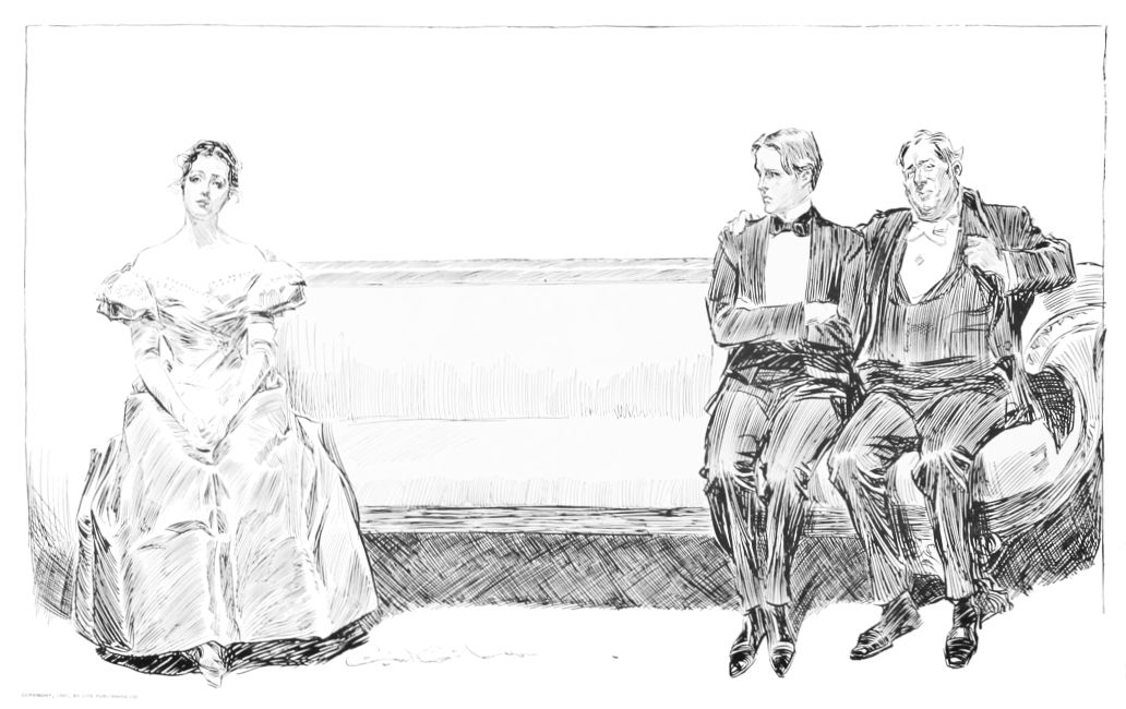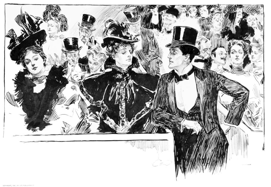 THIS is the third book in the regular series of Mr. Gibson’s published drawings, the first one being entitled “Drawings by C. D. Gibson,” the second, “Pictures of People.” Each book contains eighty-four of Mr. Gibson’s best cartoons, and all are uniform in size, shape and binding. Thanks are due to Messrs. Mitchell & Miller, Charles Scribner’s Sons, The S. S. McClure Co. and Harper & Bros., for their kind permission to reproduce a number of the drawings included in this collection.