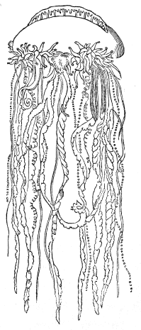 In the Acalephæ, or sea-nettles, these organs « 327 » were merely filaments without sensation, of which the use seemed to be, to entangle little creatures in, which chance might bring in their way. The animals themselves would seem, at first sight, to be very ill able to destroy small crabs and other shell-fish. You would suppose that the struggles they would make with their hard pointed legs, would tear the tender bodies of the Acalephæ; but the deficiency is supplied by the caustic luminous fluid which paralyzes the victim, and disables it for violent struggles while it is detained by the filaments, before the Acalepha attempts to swallow it.