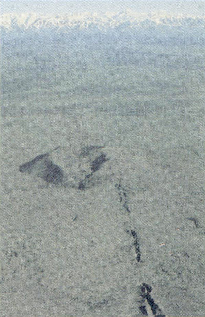 From the air the Great Rift looks like an irregularly dashed line punctuated by tell-tale cones and craters.