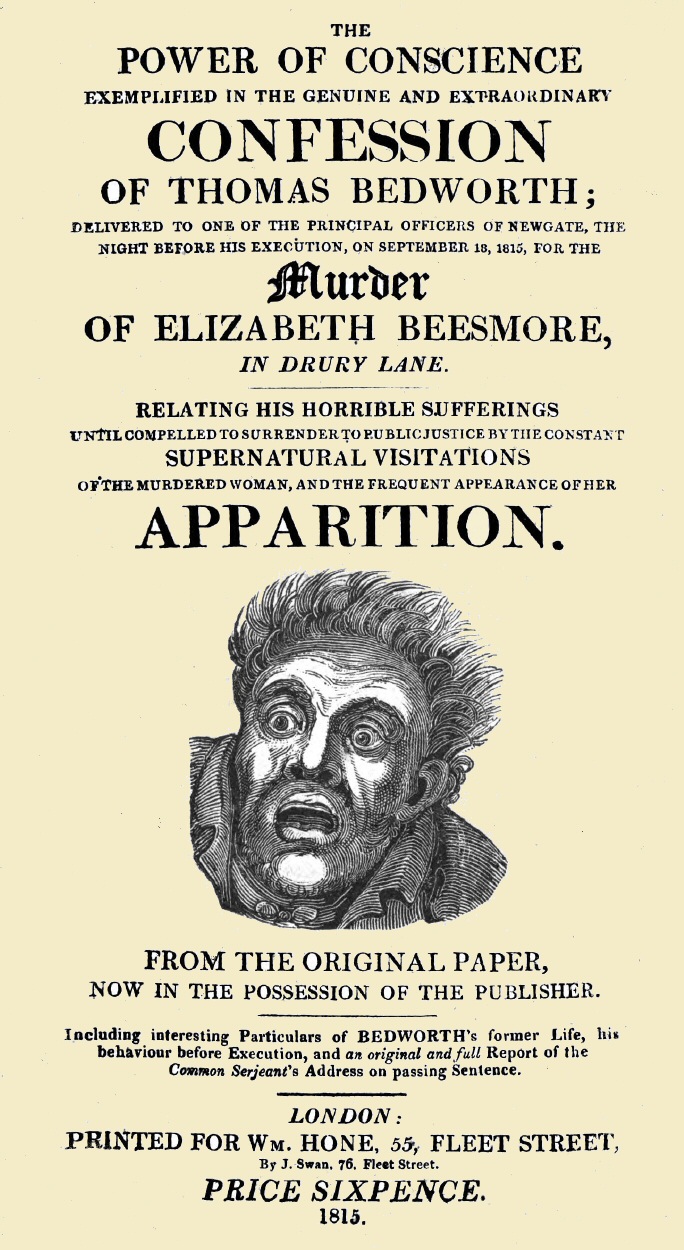 “Thomas Bedworth,—After a painful investigation of the crime which has been laid to your charge, a humane and impartial jury of your country, hearing the evidence adduced against you, as well as your own voluntary confession, have thought it their duty to find you Guilty of the horrid crime of MURDER!