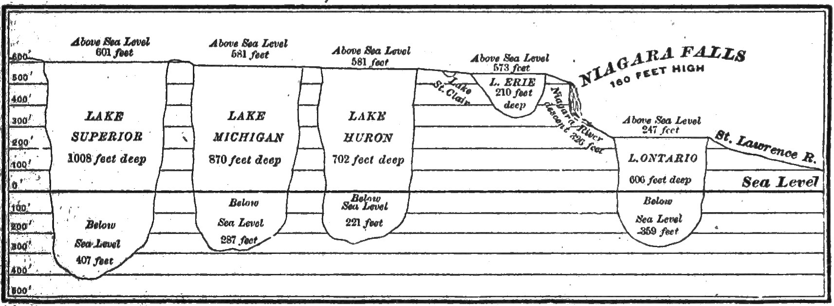 “Few persons who have not made a personal study of the matter realize the magnitude of the traffic of the Great Lakes. There were over 1,100 more vessels passing through the canal into Duluth, Minnesota, in 1891, than passed through the Suez Canal the year previous. Through the “Soo” Canal at the outlet of Lake Superior there were more than three times as many vessels and nearly a million and three-quarters tons more freight in 1890 than through the Suez Canal during the same year. There is not the same absolute record of vessels passing through the Detroit River as is obtainable for the two points previously mentioned. But an estimate made by Hon. George H. Ely, of Cleveland, shows that in 1889 there were more than 36,000,000 tons of freight carried through the Detroit River. This sum seems large when it is stated by itself, but the real magnitude will perhaps be better appreciated when it is known that this is 10,000,000 tons in excess of the tonnage at all the seaports of the United States for the same year, and 3,000,000 tons in excess of the total arrivals and clearances, both coastwise and foreign, of Liverpool and London combined. The arrivals and clearances of vessels at Chicago for 1890 numbered 21,541, while the corresponding aggregate for New York was but 15,283. The entries and clearances for the entire seaboard of the United States in that year were 37,756, while for the United States ports on the Great Lakes the arrivals and clearances numbered 88,280. The traffic of the Great Lakes in 1891 was 27 per cent of the total traffic of all the railways of the United States for the same year, and if the tonnage carried on the lakes had been carried instead by rail, at the average price per ton per mile, it would have cost, in round numbers, $150,000,000 more than was actually paid for its transportation by water.”