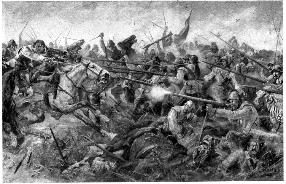 At the Battle of Dunkirk the Ironsides—as usual singing psalms—charged the Spanish Cavalry (who were in retreat) and literally cut them to pieces.