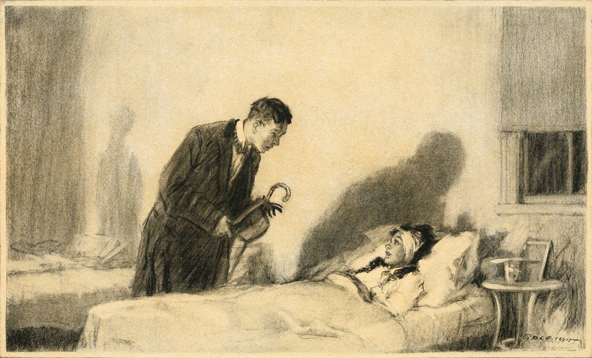 Clematis McAlpin, shy and long-limbed, just at the awkward age when woman misses being either boy or girl, had disappeared. Where, nobody knew. She might be bird’s-nesting in the swamp or crying over the “Idylls of the King” in the barn loft. Certainly she was not in the house. J. Y. Wayne had seen to that. Stern and rugged of face, he sat in the library alone and waited for Alan. He heard a distant screen-door open and slam. Steps echoed through the lonely house. Alan came and stood before him.