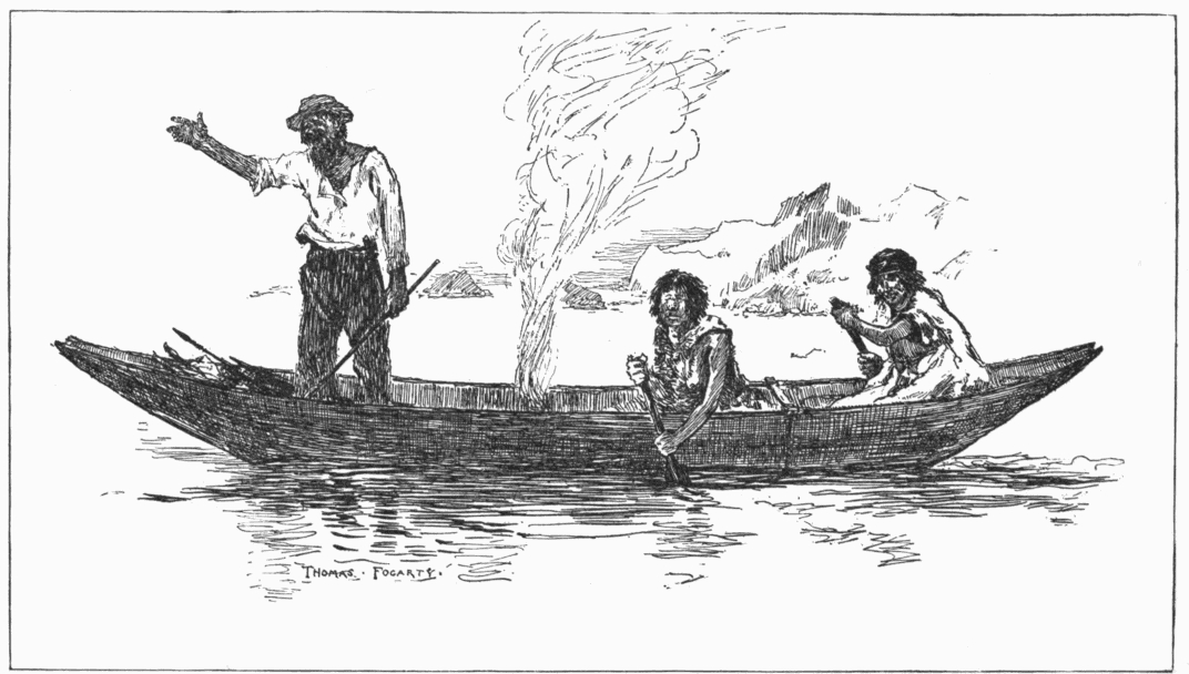 Repairing the Spray's sails—Savages and an obstreperous anchor—A spider-fight—An encounter with Black Pedro—A visit to the steamship Colombia—On the defensive against a fleet of canoes—A record of voyages through the strait—A chance cargo of tallow.