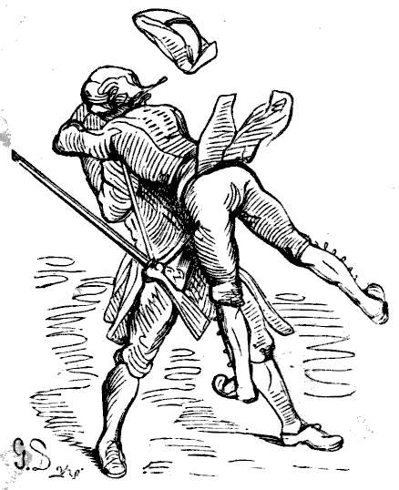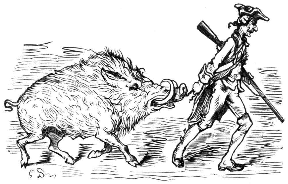 Det var naturlig, at jeg tilbragte meget av min tid utenfor hovedstaden i selskap med kjække kamerater, som forstod at sætte pris paa et udmerket jagtfelt. Bare jeg tænker paa hine svundne dage, løper mit blod hurtigere, og jeg ønsker inderlig at kunne delta i slike idrætter endnu en gang. En morgen saa jeg gjennem et av mine sovekammervinduer, at en stor dam ikke langt borte bokstavelig talt var dækket med vildænder. Øieblikkelig tok jeg riflen fra væggen, løp ned av trapperne og ut av døren i slik fart, at jeg ikke saa mig for, men støtte med panden mot dørstolpen. Det gnistret og sortnet for mine øine, men det kunde ikke stanse mig; jeg kom snart paa skudhold og la an, da jeg til min store sorg opdaget, at flintestenen var faldt av ved det voldsomme støt, jeg netop hadde faat.