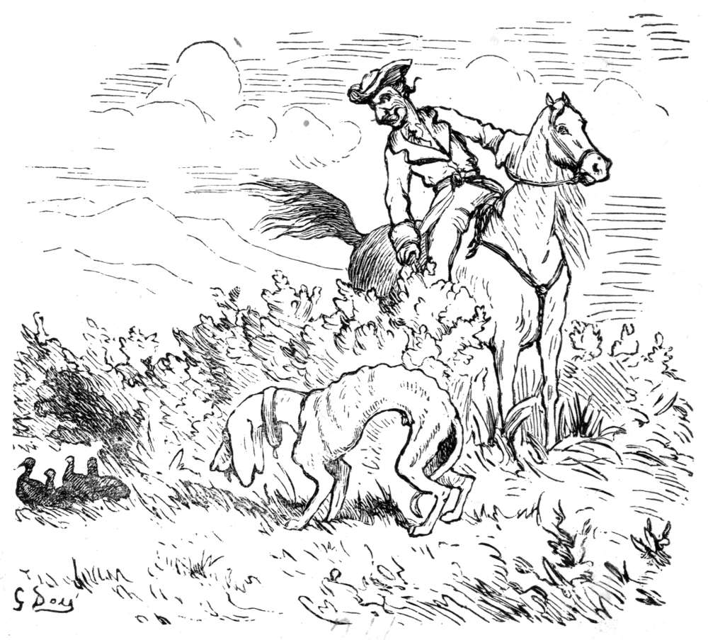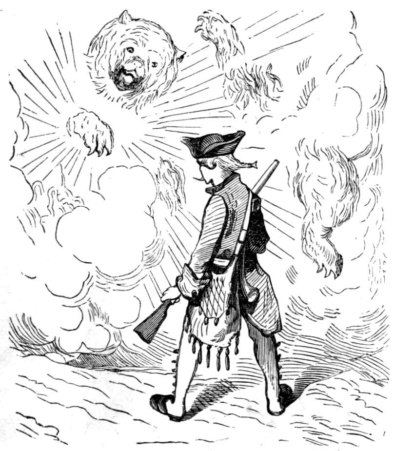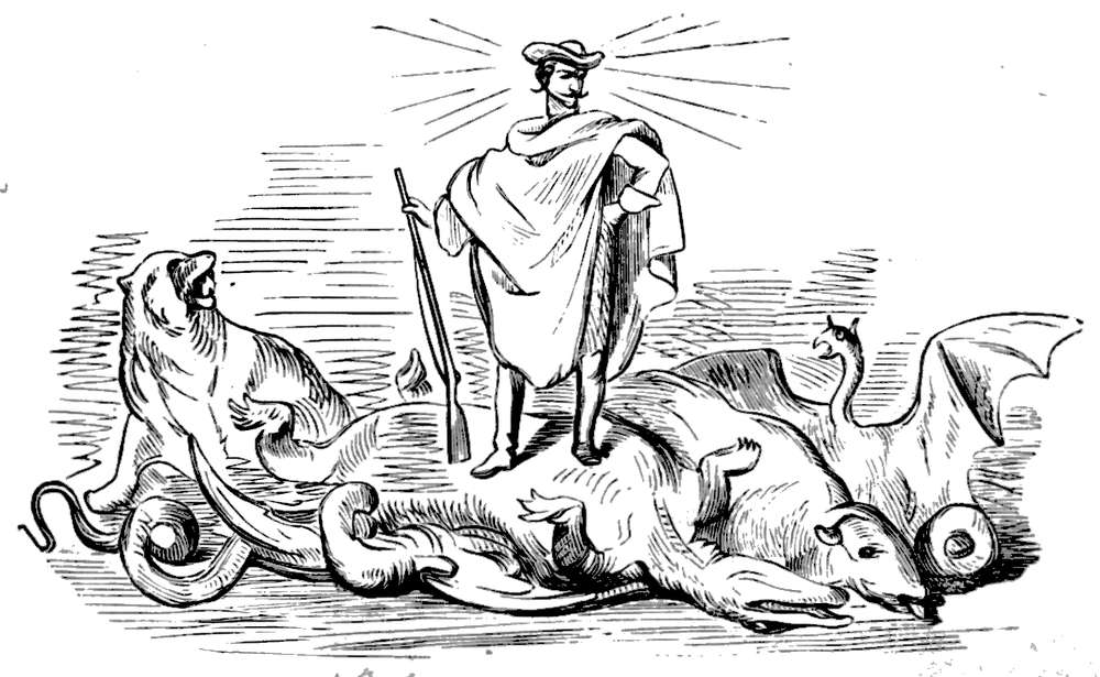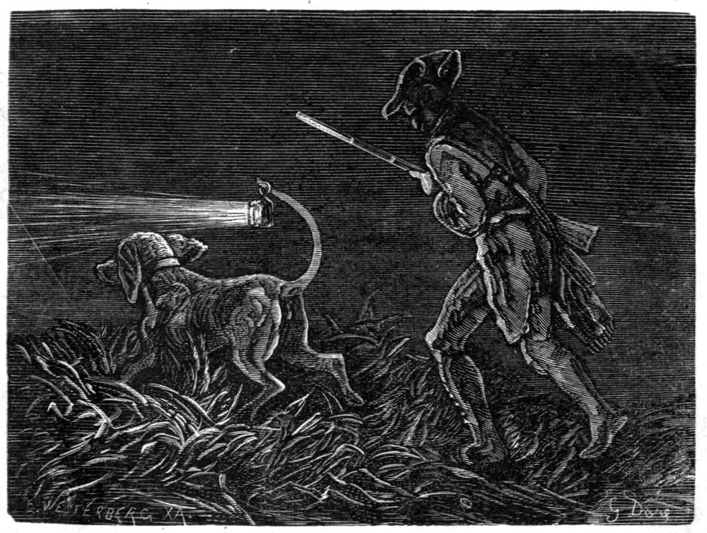 Av dens skind har jeg latt gjøre denne vest, som jeg nu bærer, og som bestandig fører mig til det sted hvor vildtet findes, naar jeg er ute paa jagt. Er jeg indenfor skudvidde, flyver en knap av vesten henimot det sted hvor vildtet ligger, og da jeg altid bærer geværet ladet og i helspænd, bringer jeg bestandig noget hjem i jagtvæsken. Jeg har nu bare tre knapper igjen, men saa snart jagttiden begynder, skal jeg faa sydd paa to nye rader. Kom og besøk mig da, og De kan være sikker paa at vi nok skal faa os en god jagt.