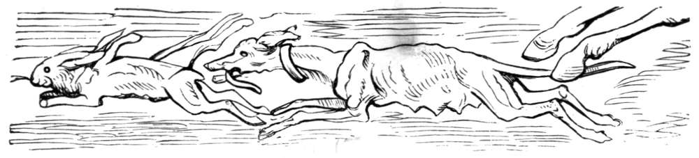 Jeg reiste derpaa til St. Petersburg, hvor jeg av en gammel ven fik en gave, som jeg satte stor pris paa. Det var nemlig en jagthund, som nedstammet fra hin berømte tispe, der bragte til verden et kuld med hvalper, mens den jaget en hare. Ulykkeligvis blev denne hund skutt av en klodset jæger, som skjøt paa den istedetfor paa haren.