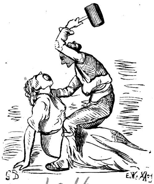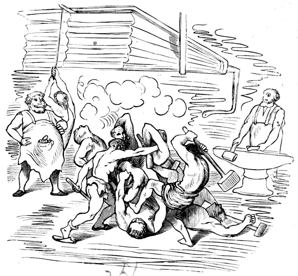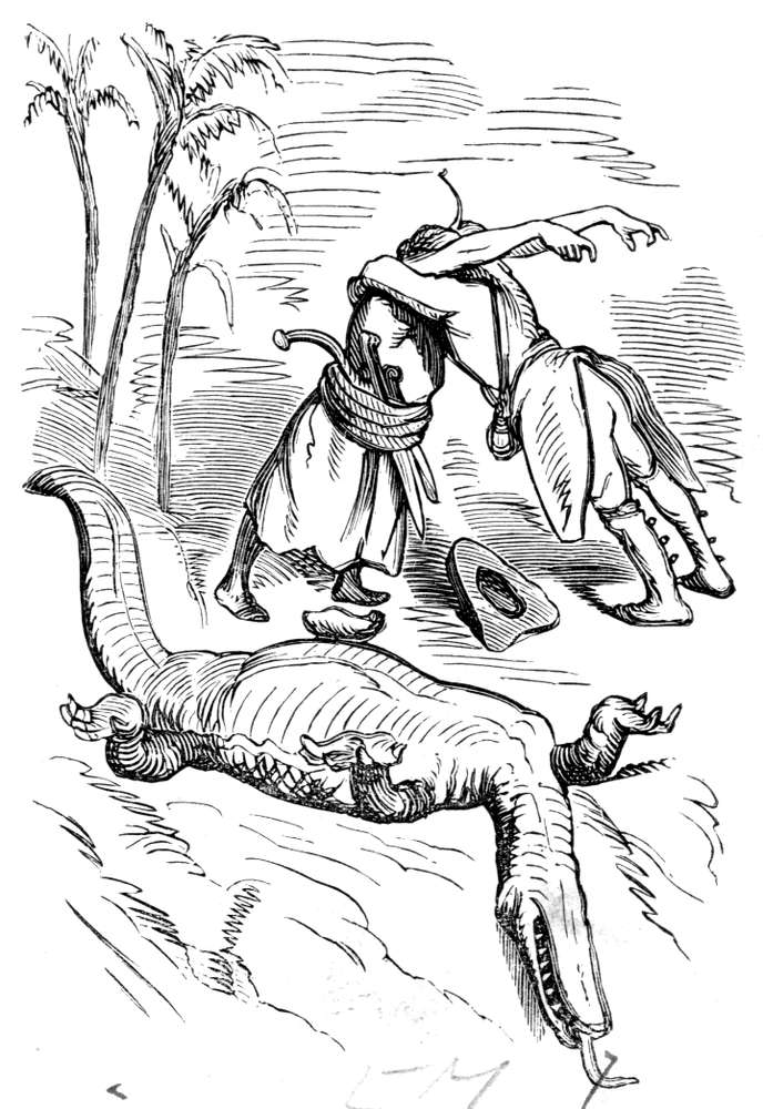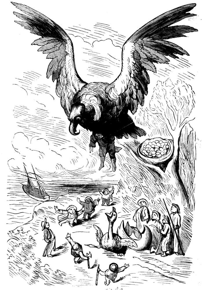 Neppe hadde ungen krøpet ut av egget, før den gamle kom til ved dens pipen, slog ned paa kapteinen og fløi tre mil op i luften med ham, saa basket den ham dygtig med vingerne og lot ham falde ned i vandet.