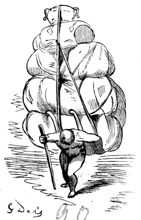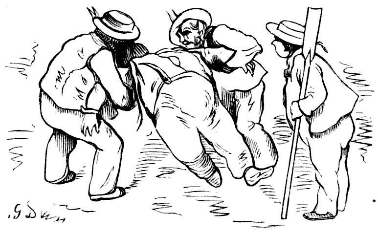 To dager før vi kom ombord igjen, saa vi tre personer indlaast i nogen bur, som hang høit op i trærne. Jeg spurte da, hvilken forbrydelse de hadde begaat, som blev straffet saa strengt, og det blev mig da fortalt, at de hadde reist utenlands og efter sin tilbakekomst hadde villet slaa en hel del løgne i sine landsmænd, idet de hadde beskrevet stæder som de aldrig hadde set og fortalt om hændelser som de aldrig hadde oplevd. Jeg synes ikke andet end at deres straf var vel fortjent, for enhver reisendes første pligt er at holde sig strengt paa sandhetens vei.