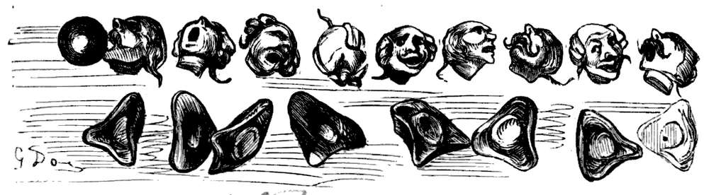 De indfødte var slanke og vakre folk og i regelen ni fot høie. De hadde tre ben, men bare en arm, og de voksne mænd hadde midt i panden et horn, som de anvendte med beundringsværdig færdighet. De holder kapløp paa melkehavet og gaar paa det likesaa let som vi paa marken.