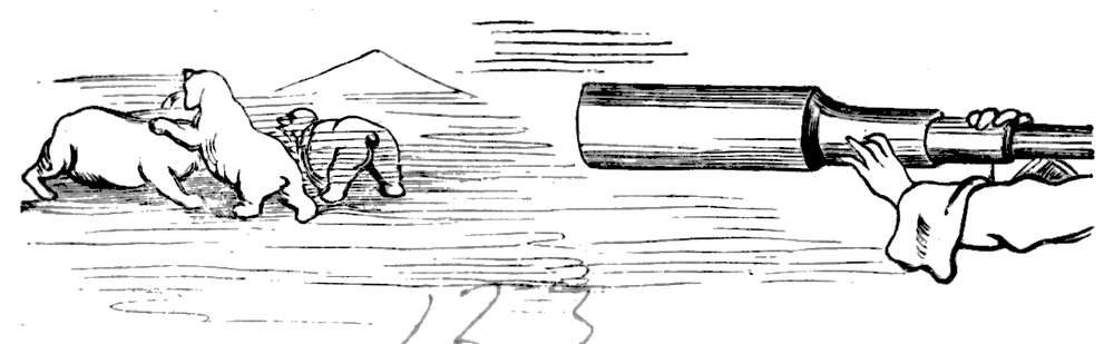 Jeg kunde ikke andet end føle medlidenhet med stakkaren. Skjønt jeg selv trængte haardt til min kappe, kastet jeg den dog over ham og kviknet ham op med noget av min feltflaske. Knapt hadde jeg utført denne kjærlighetsgjerning, før jeg hørte en røst fra skyen: