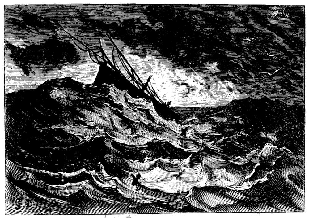 avreise blev vi overfaldt av en frygtelig storm, som rev alle