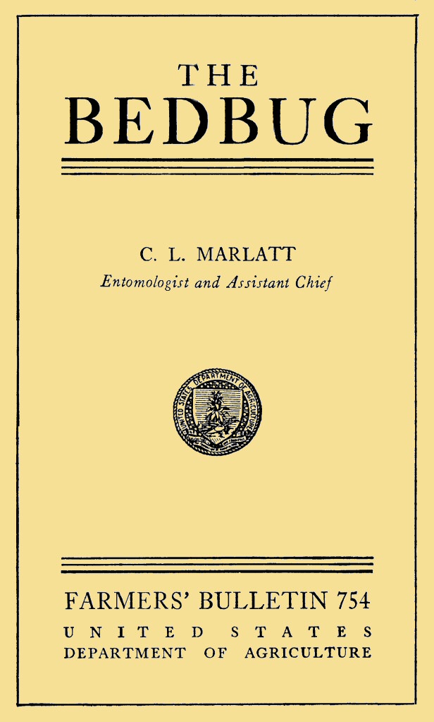 The Project Gutenberg EBook of USDA Farmers' Bulletin No. 754: The Bedbug (1934), by Charles Lester Marlatt This eBook is for the use of anyone anywhere at no cost and with almost no restrictions whatsoever. You may copy it, give it away or re-use it under the terms of the Project Gutenberg License included with this eBook or online at www.gutenberg.org/license Title: USDA Farmers' Bulletin No. 754: The Bedbug (1934) Author: Charles Lester Marlatt Release Date: September 18, 2020 [EBook #63229] Language: English Character set encoding: ISO-8859-1 *** START OF THIS PROJECT GUTENBERG EBOOK USDA FARMERS' BULLETIN NO. 734 *** Produced by Tom Cosmas from files generously made available by USDA through The Internet Archive. All resultant materials are placed in the Public Domain.
