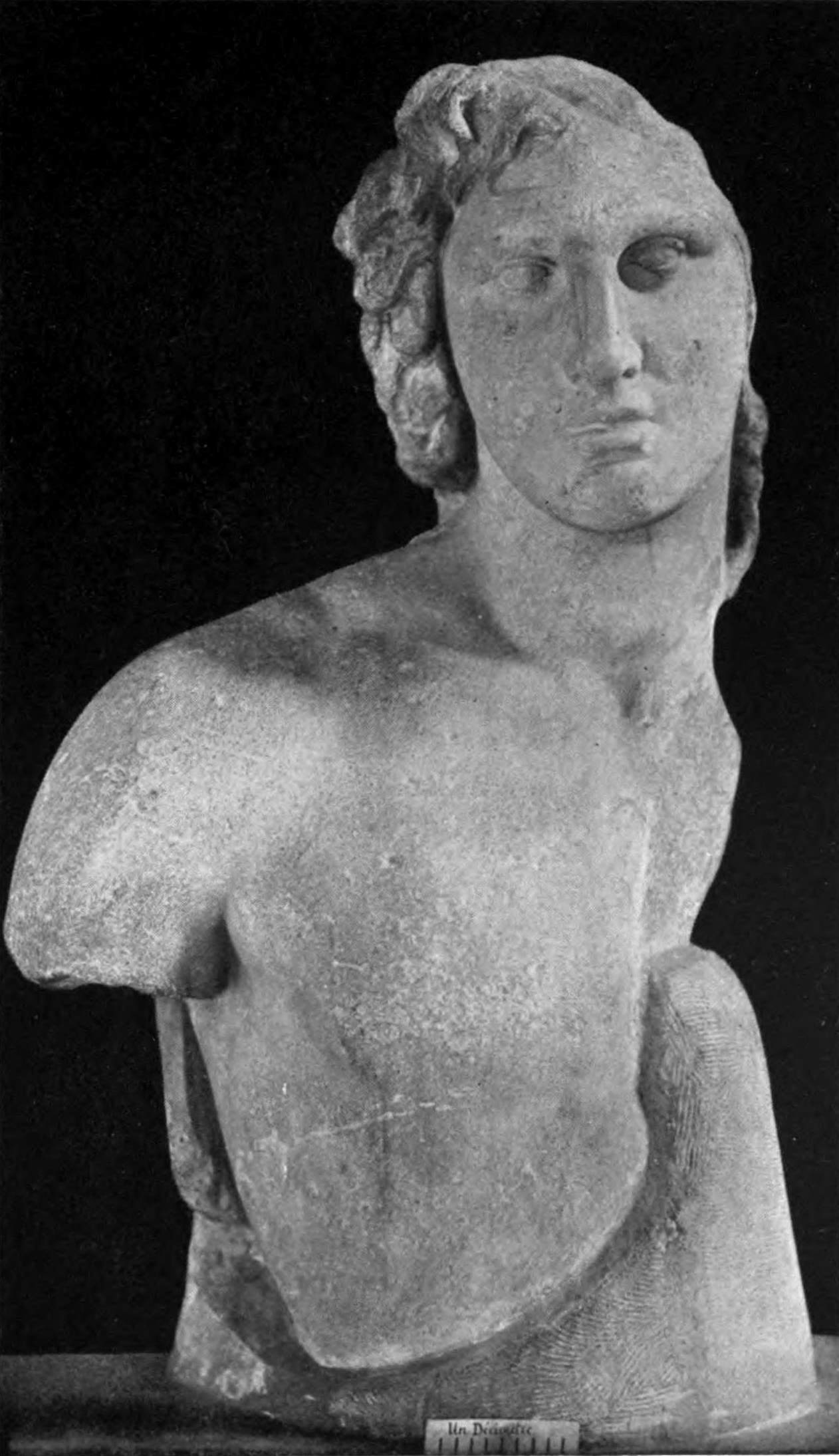 The outstanding feature of the history of Greek sculpture during the Hellenistic period is the transference of its vital centres from the mainland to the new kingdoms of the Diadochi on the east and south and to the great new free state of Rhodes. The chief cause was an economic one. Alexander’s campaigns brought about a revival of prosperity and wealth in the Greek world, but among his friends and not among his enemies. Athens was always his enemy and the enemy of his Macedonian successors. Consequently during the whole period from the death of Alexander to the Roman conquest Athens was either under Macedonian rule or in danger of Macedonian attack. It was Macedonian policy to keep her weak and isolated, and her trading supremacy3 began to be transferred to the island of Delos. The great days of Attic art passed with the death of Praxiteles and the coming of Alexander. In the Peloponnese the pupils of Lysippos carried on into the third century the traditions of the Sikyonian school, but we can see from such knowledge as we possess of their activities that the wealth and fame of the new kingdoms were already calling the artists to abandon the impoverished towns of the mainland. The Peloponnese also opposed Alexander and his successors, and Macedonian garrisons held the chief fortresses of the country. We find Eutychides of Sikyon working for Antioch, and Chares working at Lindos in Rhodes. After the date given for the pupils of Lysippos in 296 B.C., Pliny makes the following significant statement: ‘cessavit deinde ars, ac rursus Olympiade CLVI (156 B.C.) revixit.’1 For 150 years the history of artistic development must be studied on the eastern side of the Aegean.