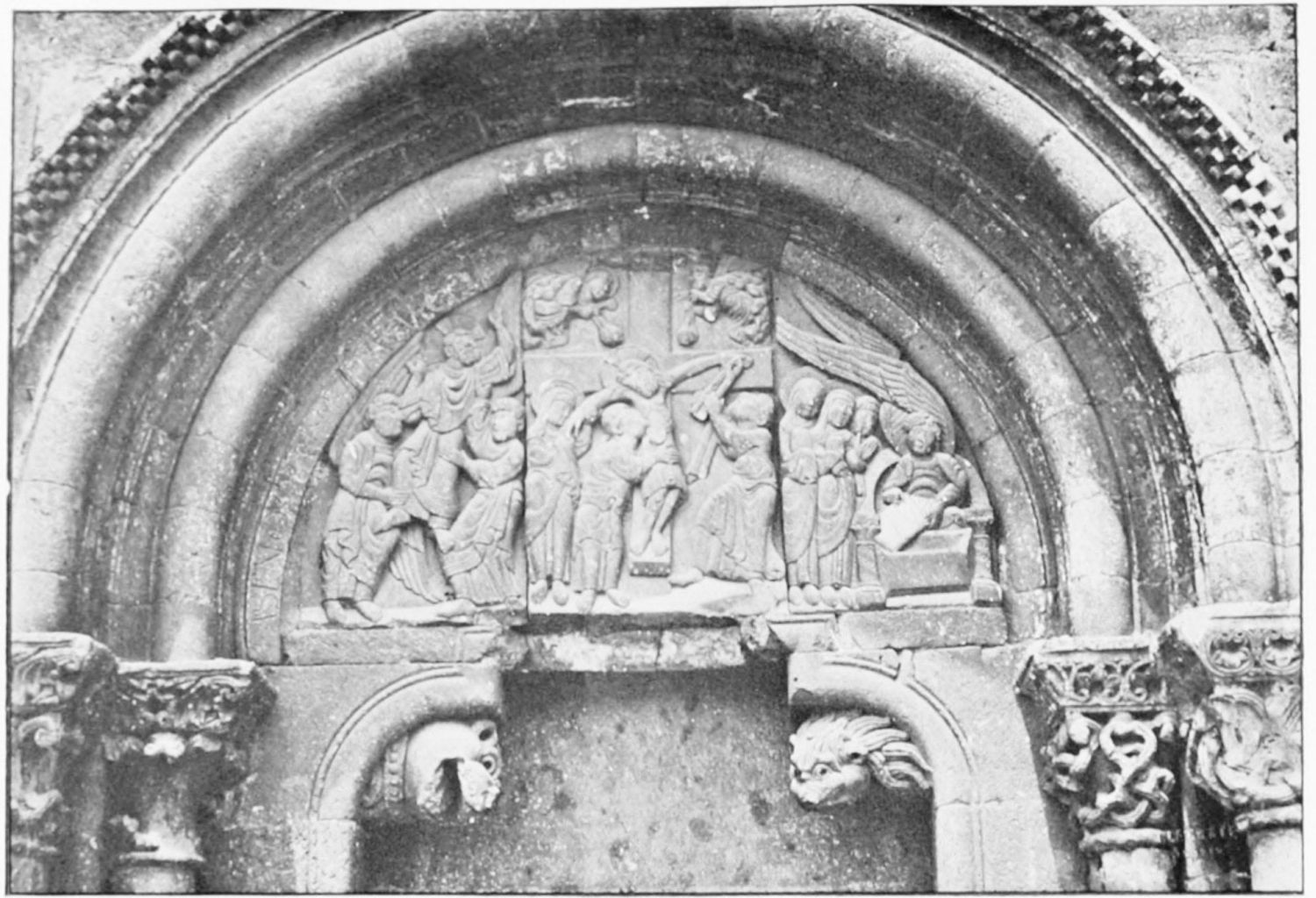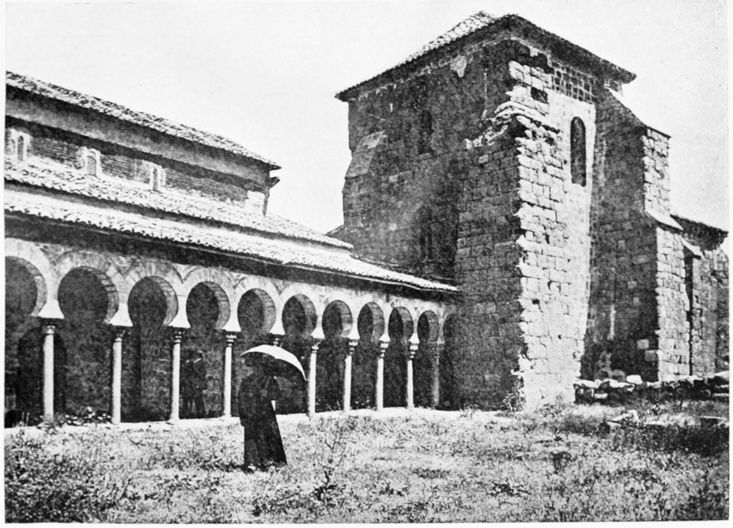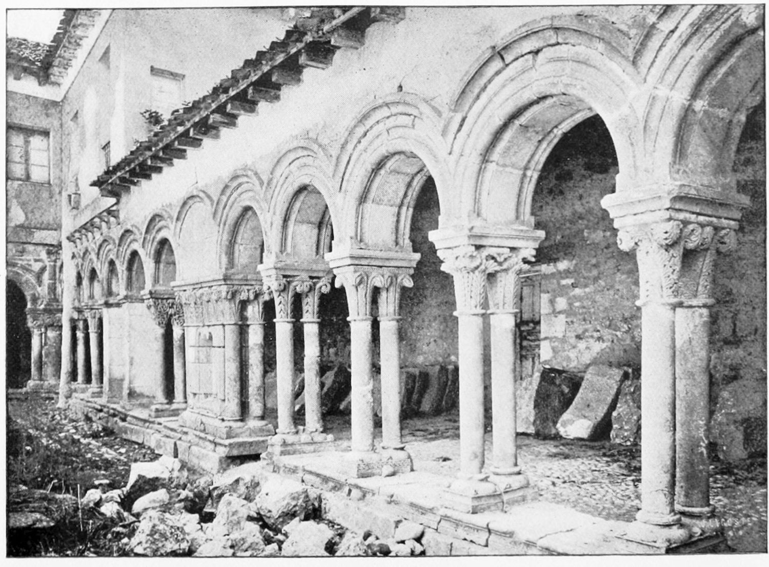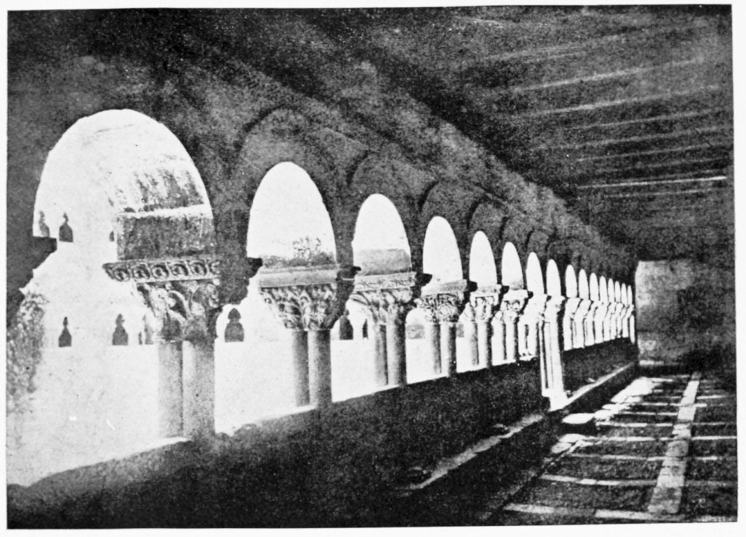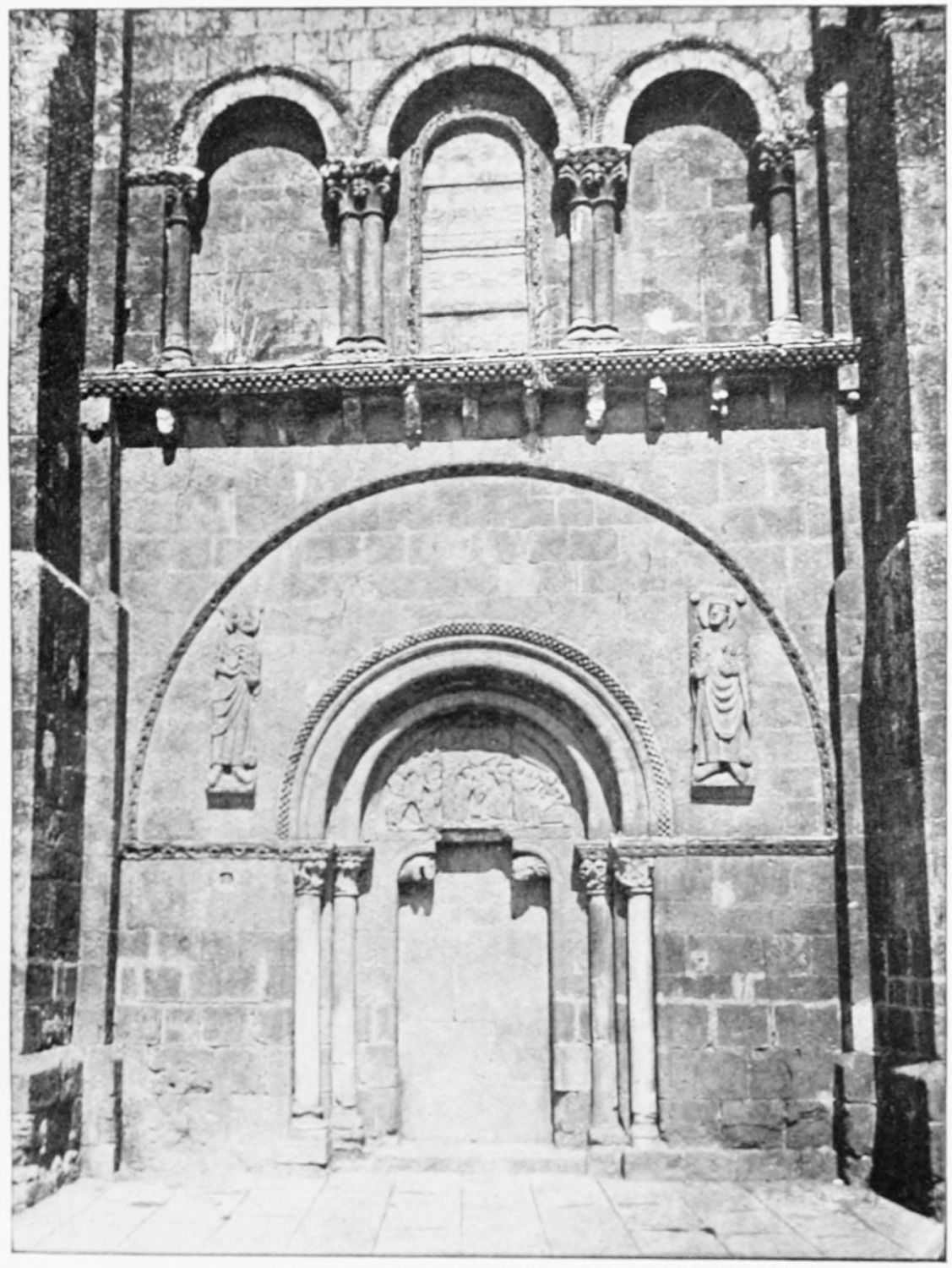 The modern church of San Marcelo, which{31} gives its name to the square, was founded by Ramiro I. in the ninth century, and was liberally endowed in after years by Alfonso VI. Marcelus is a reputed local martyr, a Roman legionary who refused to adore the divinity of Cæsar, and was beheaded, having blessed his executioners. By another account the martyrdom took place at Tangier, whence, at all events, the saint’s relics were brought here in 1493. The tympanum of a thirteenth-century doorway in the wall at the back of the church is all that remains of the original fabric. A deserted esplanade beyond the walls, to the south-west of the city, marks the site of the once famous shrine of San Claudio, erected first in Constantine’s day on the place of martyrdom of Claudius, Lupercius, and Victoricus. Al Mansûr is said to have been struck with sudden panic when about to attack this church. Successive fanes of great magnificence rose over the spot, the last being destroyed by fire in the sixteenth century.