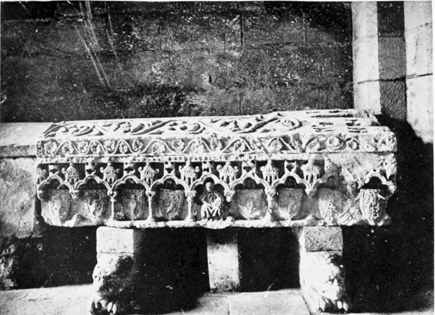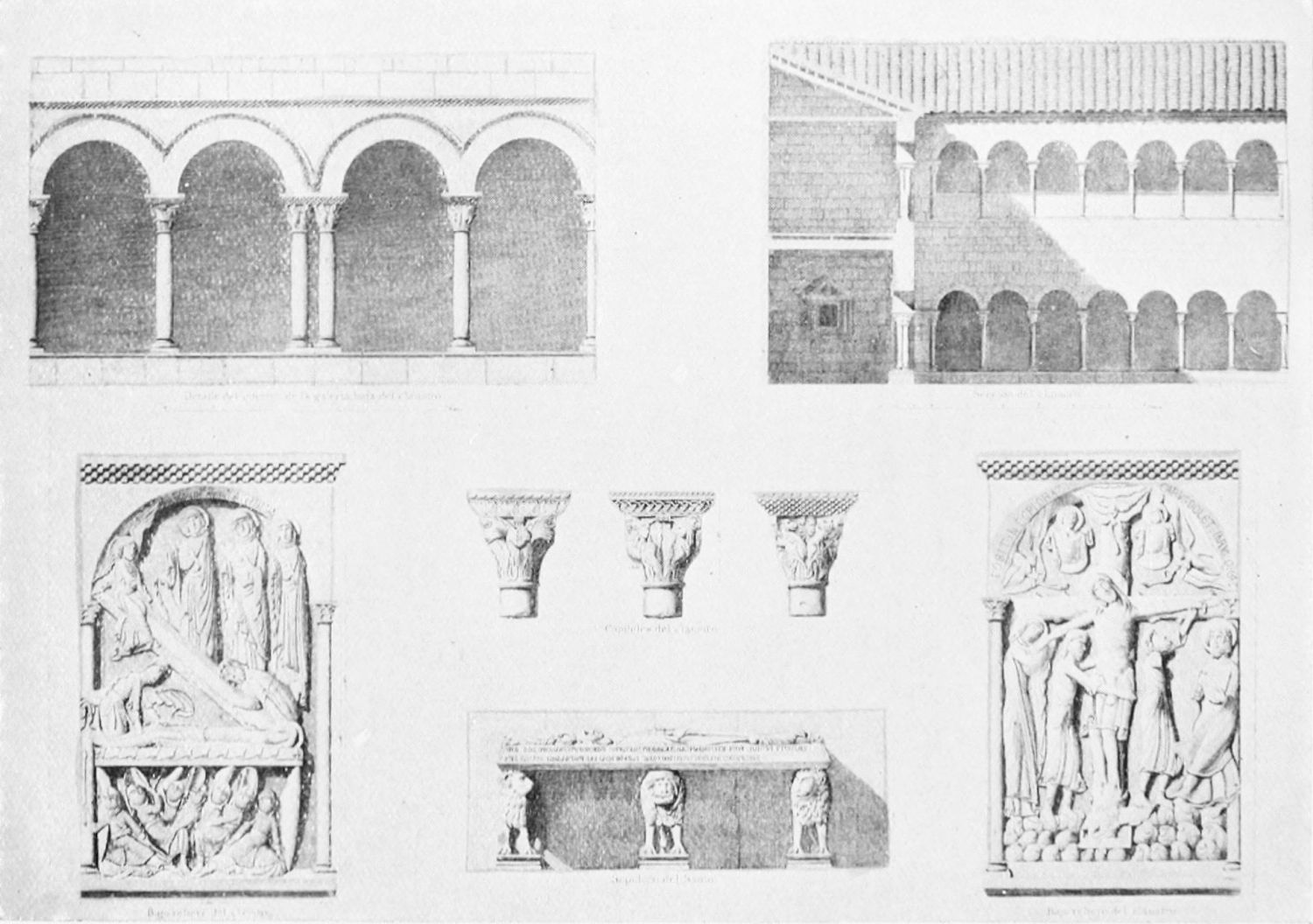 The church is in the Romanesque style, the oldest portion being the chapel of Santa Catalina, which Street thinks was the original fabric of Fernando I. The chapel was intended as a mausoleum for the royal family of Leon, but twelve tombs only remain out of thirty. The only inscriptions are on the resting-places of Alfonso V. and Sancha, the sister of Alfonso VII. Here were buried Alfonso IV., Ramiro II., Ordoño III. and his queen, Sancho I., Ramiro III. and his queen Urraca, Fernando I. and Queen Sancha, Sancho the Great of Navarre, and the murdered Count Garcia. Here, before the Pantheon was despoiled by the French in{11} 1808, might have been seen the marble and porphyry sepulchre of the brave princess Urraca of Zamora, and the urns of the Moorish and French wives of Alfonso VII. Now, the inscriptions having been wantonly defaced, it is impossible to identify the few remaining sarcophagi.