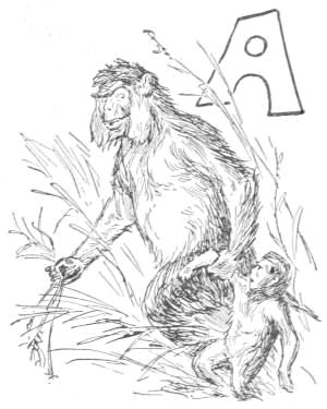 “Tailed Apes, upright Apes, Baboons and Monkeys of low degree: I am tired living on trees. I am getting too old and fat to climb, and cannot go up in the air every time I want to sleep. My eyes are bad, and can’t tell a rotten limb from a sound one. Only two days ago, while eating a cocoanut, the limb broke on which I was sitting, and I fell to the ground, striking a porcupine; and there has been a sick monkey ever since. Just before the big rain I was chased up a tree by a hyena, when, before I got out of reach, he seized my tail, already reduced to a stump, and I had to let go of either the tree or my tail. I stuck to the tree, but to-day I am a tailless Ape! Why should the ground be conceded to tigers and snakes? The earth was made for monkeys. Our food is mostly on the ground, and it is easier to walk on a level than up and down. We can run faster than[16] we can climb. We cannot fly, like the birds, and there is no easy way for such big folks to get up a tree. But we dare not come to the ground. If we do we must fight some brute. The tigers want the earth; and we can’t afford to maintain perpetual war. I am, therefore, for peace, and so favor killing off our enemies. If the forces of the trees will but combine, dropping their disputes about the milk that is in the cocoanut, they can conquer the forces of the earth. Resolve, then, monkeys all, to make a fight for the land, and not be so often found up a stump. True to your ape-hood, join me in an oath to drive out the ground-beasts. Everything in this valley will then be ours. We shall have the plants and berries, and frogs, and little fishes. We can then lie down to sleep without falling off, and run about without getting tired. Whoever loves monkeykind will, therefore, follow my advice. Now, all of you who are resolved to drive out the beasts which claim this land, swear with me by scratching your top rib while I crack this butternut and eat the kernel.”