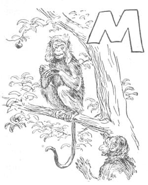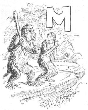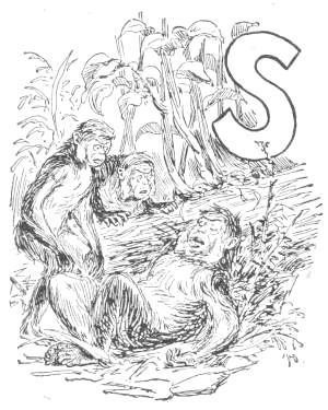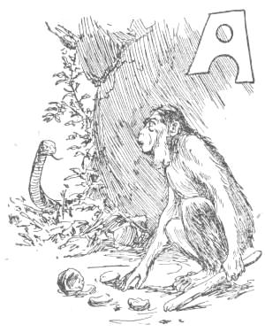 The snakes, however, soon attacked these homes, and all the more eagerly because of the food stored in them. For the Apes found that they could put their structures to many uses not before known. They would hold their provisions, as well as themselves, and would protect such provisions from the weather, as well as from the snakes, and so preserve them for a longer time. Their homes accordingly became store-houses, and this facility for keeping provisions by storage stimulated the collection of them. Instead of gathering only what they wanted to eat at the time, the Apes now picked up all they could find, and placed it in their dug-outs. They soon learned to allow nothing to go to waste, and became economical. They even collected when they did not want anything, from the mere fact that they could store it, and thus[30] became provident. They believed they might want in the future, and so often stored large quantities; for some Apes early became avaricious. They got in time to be as proud of their possessions as of their homes, and often gathered from a feeling of ambition. Shoozoo claimed that he had enough fruits in his mound to feed all the Apes of Cocoanut Hill for a lifetime; which nobody of that generation believed, and nobody of the next doubted.