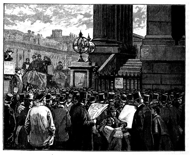 relieved only by the knowledge, not only that the Queen herself had taken her place at the sufferer’s sick bed, and that the ever self-sacrificing Princess Louis of Hesse—a nurse of high technical skill—had installed herself in charge of the sick room. The Princess of Wales was herself suffering, doubtless from the same poison which had attacked her husband. Day by day the bulletins were eagerly scanned, not only in the newspapers, but by excited crowds at public places like the Mansion House and Marlborough House, where they were exhibited. After twenty-five days of suffering the Prince, who had shown signs of recovery, had a relapse, and then the worst was feared. The Prince it was thought must die, and the shock of the bereavement might be fatal to the Queen, whose health was already sadly impaired. Englishmen remembered for the first time that only two precarious lives—one of which was flickering between life and death—stood between the country and a Regency. But what might a Regency portend? It had been fatal to the Monarchy in France; within the memory of living men it had nearly proved fatal to the Monarchy in England. When it was announced on the 9th of December that all the members of the Royal Family had suddenly been summoned to Sandringham, securities in the Money Market, with the exception of Consols, fell from one to{413}