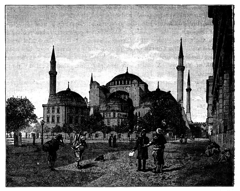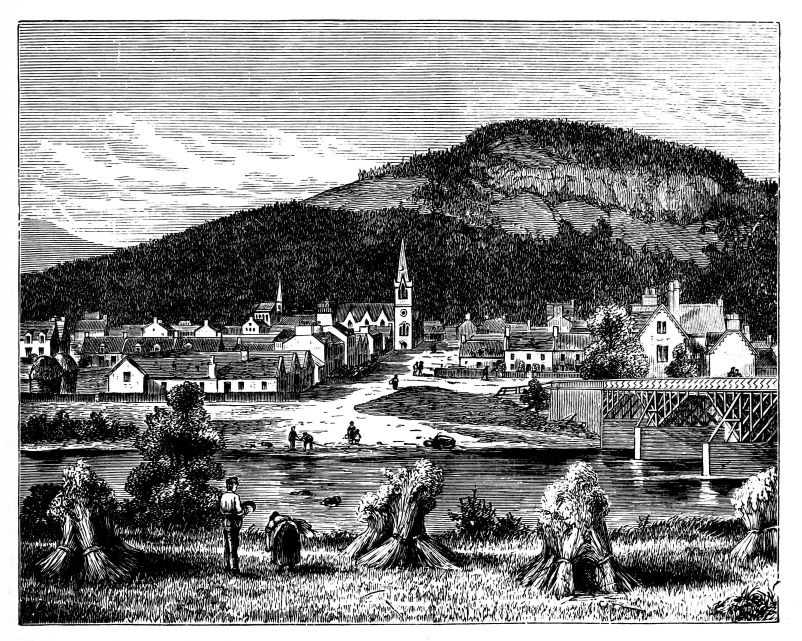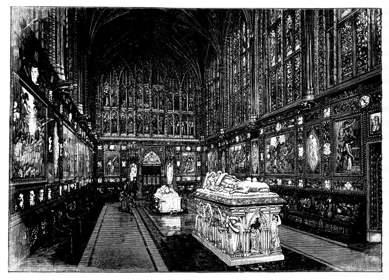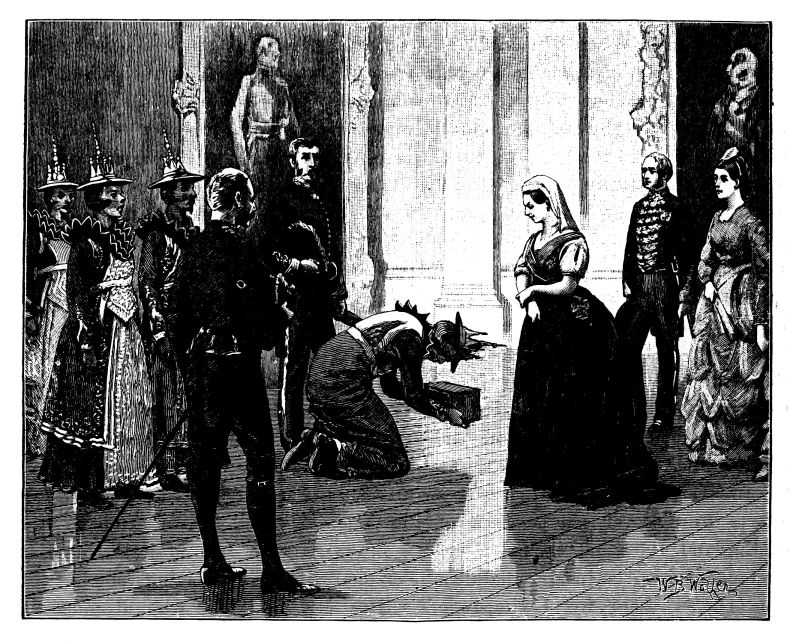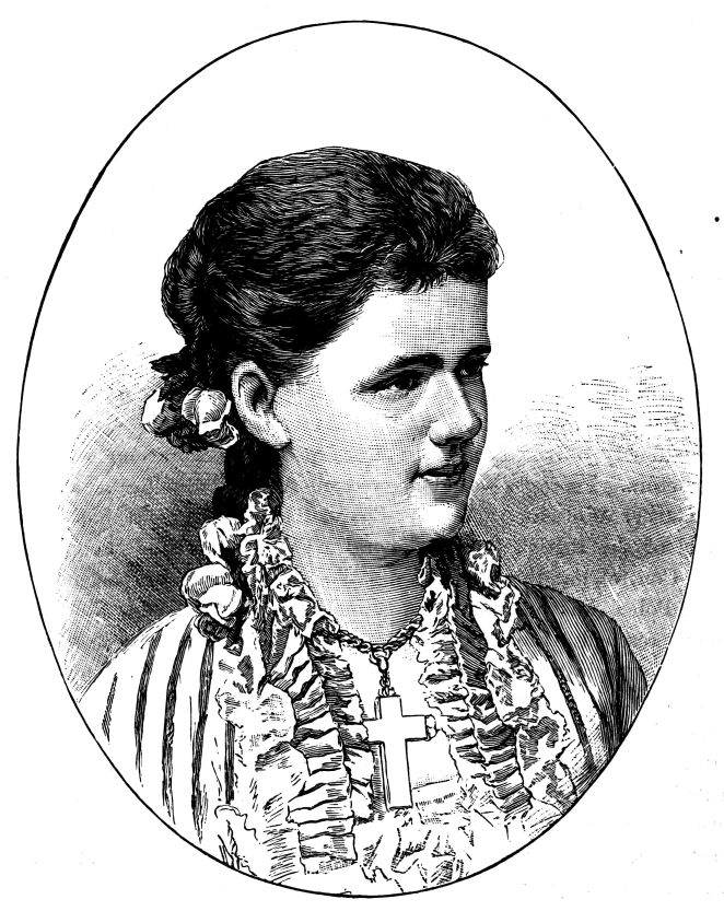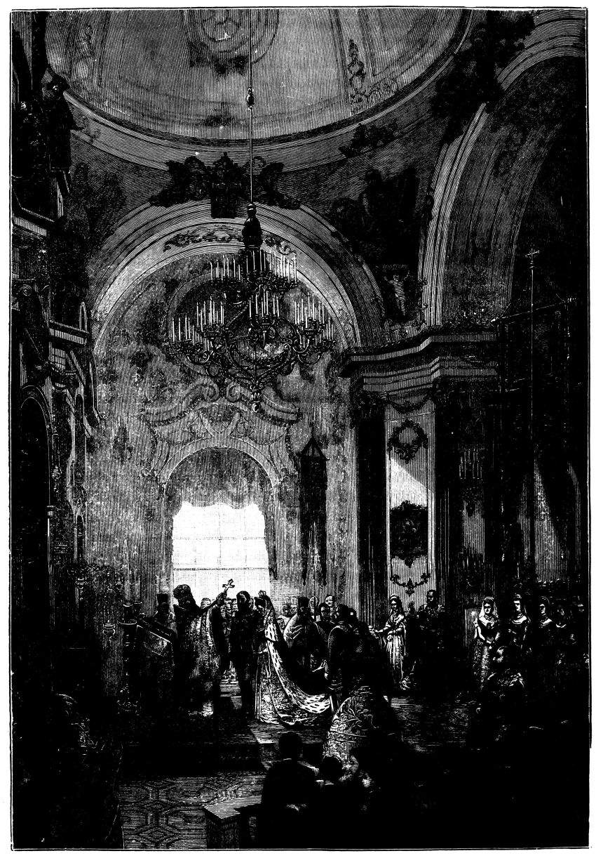 The town of Windsor was en fête for the occasion, the people crowding the Castle Green, and the Eton boys occupying the Castle Hill. The police and soldiery kept a passage open for the guests who came from London by special train, and who were conveyed in Royal carriages to St. George’s Chapel amid general cheering and joyous ringing of bells. The Ministers of State, Foreign Princes and Ambassadors, and other prominent persons, were gay in rich and glittering uniforms. Of the bridal party, the first to arrive was the Duke of Argyll, with his family. He wore the dress of a Highland chieftain, with philabeg, sporran, claymore, and jewelled dirk. A plaid of Campbell tartan was thrown across his shoulders, over which was also hung the Order of the Thistle. He was accompanied by the Duchess of Argyll, who shone in silver and white satin. The Lord Chancellor, in wig and gown, and Lord Halifax, in Ministerial uniform of blue and gold, walked up the central aisle and took their{408} seats, along with members of the Cabinet and the Privy Council, in the stalls to the left of the altar. Then came the Princess Christian, in pink satin, trimmed with white lace, and some Indian potentates, radiant in auriferous scarlet. Lord Lorne, the bridegroom, next entered, arrayed in the uniform of the Argyllshire Regiment of Volunteer Artillery, of which he was Colonel, looking pale and nervous. He was supported by his groomsmen, Lord Percy and Lord Ronald Leveson-Gower. The Princess Beatrice arrived evidently in high spirits, and wearing a pink satin dress, her sunny hair flowing freely down her back. The Princess of Wales, who received an almost affectionate greeting, was the last of the Royal party to come. All the members of the Royal Family were then present, with the exception of Prince Alfred. As the procession advanced up the nave, the bride was supported on the right by the Queen, and on the left by the Prince of Wales and the Duke of Saxe-Coburg and Gotha. The Princess, in her dress of white satin and veil of Honiton lace, was voted one of the most charming brides on whom the sun had shone. Eight bridesmaids followed, all daughters of dukes and earls, clad in white satin, decorated with red camellias. The Queen appeared in black satin, relieved by the broad blue ribbon of the Garter, and by a fall of white lace, which nearly reached to the ground. The service was read by the Bishop of London, the Queen giving away her daughter.[30] After the ceremony, the Queen took the bride in her arms, and kissed her heartily, while the Marquis of Lorne knelt and kissed the Queen’s hand. The Royal wedding breakfast was served in the magnificent oak-room of Windsor Castle, the company including the Prince and Princess of Wales, Prince Arthur, the Duke and Duchess of Cambridge, Prince and Princess Teck, the Duke of Saxe-Coburg, Prince and Princess Christian. Another breakfast for the general company was served in the Waterloo Gallery. When the newly-married pair left the Castle for Claremont, it was noticed that the bride wore a charming travelling costume of Campbell tartan. As they departed, their numerous relatives showered over them a quantity of white satin slippers, and, following an ancient Highland usage, a new broom was also thrown after them as they got into the carriage. The Oriental custom of flinging rice after a wedded couple, introduced into England by the family of Musurus Pasha, the Turkish Ambassador, had not then become the mode in the highest circles of Society.[31]