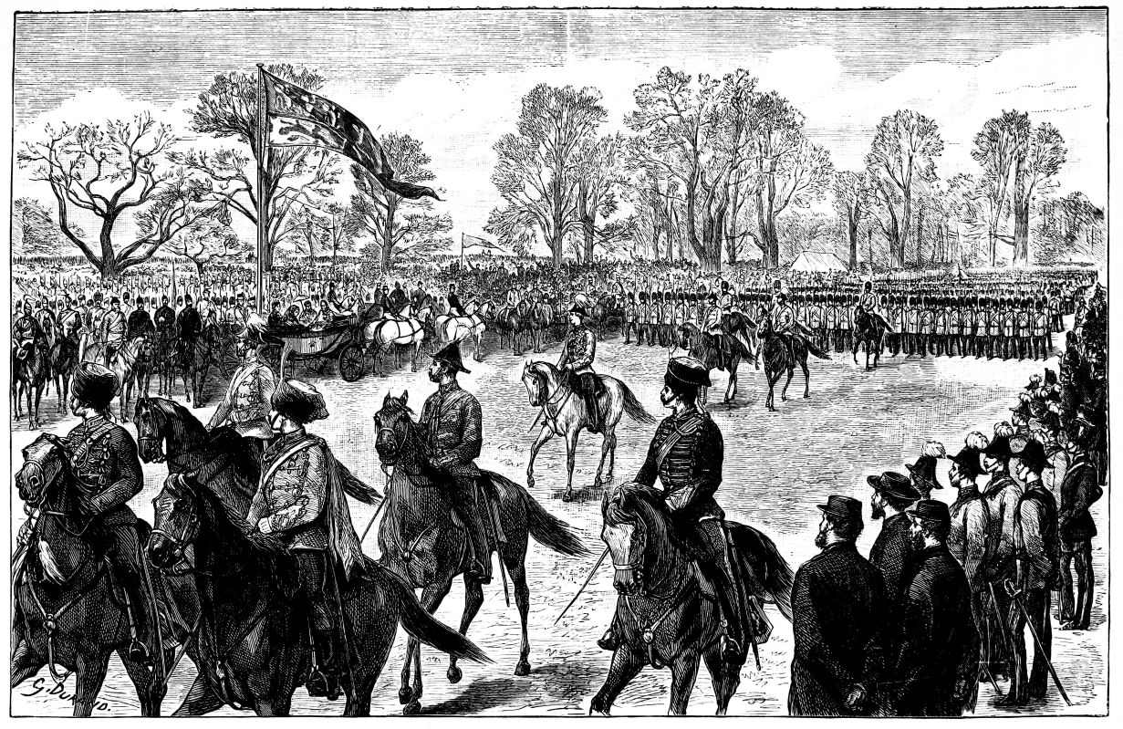 In September the country was greatly grieved to learn that the Queen had fallen seriously ill. Those who had been reproaching her for retiring from active life now began to suspect what was the truth, namely, that the Queen’s labours were not materially lessened by her withdrawal from the exciting functions of each London season. Her illness took the form of a sore throat, accompanied by glandular swellings under the arm, and the sympathetic sentiment of London was expressed by the Times, which mournfully regretted that the Sovereign had ever been pressed to overwork herself.