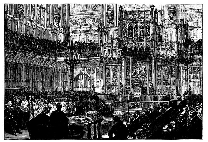 Mr. Forster’s Ballot Bill was introduced on the 28th of February, and when the Second Reading had been passed after three nights’ dull debate in June, the Conservatives attempted to talk it out by reviving, on various frivolous pretexts, a discussion on the principle of the Bill in Committee.[9] After these tactics had been exhausted, the Opposition endeavoured to smother the Bill with dilatory amendments. The supporters of the Government, on the other hand, attempted to defeat the factious obstruction of their opponents by remaining silent during the debates. The obstructive party, after{396} a long and tedious fight, were beaten, and the Bill passed through Committee, but shorn of the clauses which cast election expenses on the rates, and made all election expenses not included in the public returns, corrupt expenses.[10] When the Bill reached the House of Lords, the real motive which dictated the apparently futile and stupid obstruction of the Conservative Opposition in the House of Commons, was quickly revealed. The Lords rejected the Bill on the 18th of August, not merely because they disliked and dreaded it, but because it had come to them too late for proper consideration.[11]