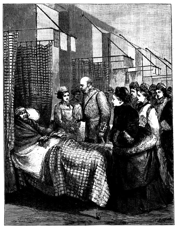 “I thank you for your loyal Address. I congratulate you on the completion of a work of so much importance to the suffering poor of the Metropolis. The necessity for abandoning the ancient site of your Hospital has been wisely turned to account by the erection of more spacious and commodious buildings in this central situation, and I rejoice that a position of appropriate beauty and dignity has been found for them on the noble roadway which now follows the course of this part of the Thames, of which they will henceforth be among the most conspicuous ornaments. It gives me pleasure to recognise in the plan of your buildings, so carefully adapted to check the growth of disease, ample and satisfactory evidence of your resolution to take advantage of the best suggestions of Science for the alleviation of suffering, and the complete and speedy cure of the sick and disabled. These great purposes are not least effectually promoted by an adequate supply of careful and well-trained nurses, and I do not forget that in this respect your Hospital is especially fortunate through the connection with it of the staff trained under the direction of the lady whose name will always remain associated with the care of the wounded and the sick. I thank you for the kind expressions you have used in regard to the marriage of my dear daughter.”