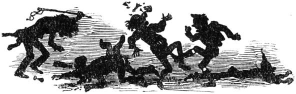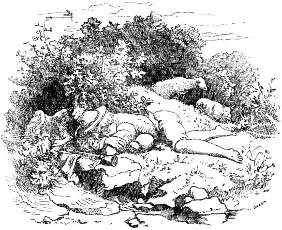 lagen, und begann, den einen mit einem derben Steine