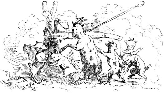 Da nun der Schneider zum Könige kam, seine Tat selbst anzeigte, und die Königstochter samt dem halben Königreich begehrte, gereute den König sein Versprechen, das er dem unbekannten Kriegsmann gegeben, gar übel, denn die Riesen waren nun erwürgt, und konnten keinen Schaden mehr tun; dachte darüber nach, wie er des Helden mit Fug abkommen möchte, und war nicht im mindesten gesonnen, ihm die Tochter zu geben. Sprach daher zum Schneider, wie er in einem andern Walde leider noch ein Einhorn habe, das ihm sehr großen Schaden tue an Fischen und Leuten; dasselbe solle er doch auch noch fangen, und so er dieses vollbringe, wolle der König ihm die Tochter geben. Der gute Schneider war auch das zufrieden, nahm einen Strick, ging hin zu jenem Walde, allwo das wilde Einhorn hauste, und befahl seinen Zugeordneten, draußen vor dem Walde zu warten, er wolle allein hineingehen und allein die Tat bestehen, wie er die gegen die zwei Riesen auch allein und ohne andere Hilfe bestanden. Als der Schneider eine Weile im Walde umherspaziert war, ersieht er das Einhorn, das gegen ihn daher rennt mit vorgestrecktem Horn und will ihn umbringen. Er aber war nicht unbehende, wartete, bis das Einhorn gar nahe an ihn herankam, und als es nahe bei ihm war, schlüpfte er rasch hinter den Baum, neben dem er zu allernächst 11 stand, und da lief das Einhorn, das im vollen Rennen war und sich nicht mehr wenden konnte, mit aller Hast gegen den Baum, daß es ihn mit seinem spitzen Horn fast durch und durch stieß, und das Horn unverwandt darin stecken blieb. Da trat der Schneider, als er das Einhorn am Baume fest zappeln sah, hervor, schlang ihm den mitgenommenen Strick um den Hals, band es an den Baum vollends fest, ging heraus zu seinen Jagdgesellen, und zeigte ihnen seinen Sieg über das wilde Einhorn an. Darauf ging das Schneiderlein zum König, tät demütiglich Meldung von der glücklichen Erfüllung des königlichen Wunsches, und erinnerte bescheidentlich an das königliche zweimalige Versprechen. Darob ward der König über die Maßen traurig, wußte nicht, was zu tun sei, da der Schneider der Tochter begehrte, die er doch nicht haben sollte. Und begehrte noch eins an den Kriegsmann. Dieser solle nämlich auch das grausame Wildschwein, das in einem dritten Walde liefe und alles verwüste, einfahen, und so er auch dieses vollbringe, dann wolle der König ihm die Tochter ohne allen Verzug geben, wolle ihm auch seine ganze Jägerei zur Hilfe beiordnen.