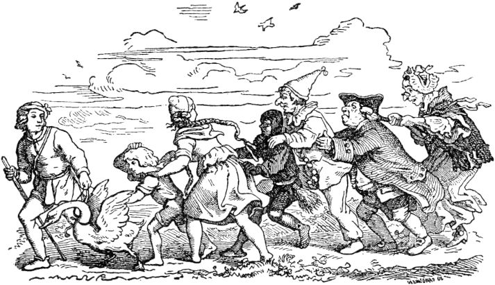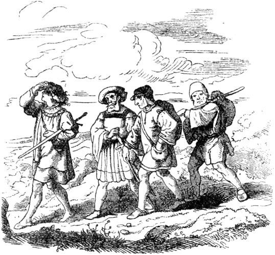 Da währete es nicht lange Zeit, so wurden die Ritter des Königs, die nur eine karge Löhnung hatten, dem guten Schneider gram, und hätten gern gewollt, daß er beim Teufel wäre, fürchteten zumal, wenn sie mit ihm uneins würden, möchten sie ihm nicht sattsam Widerstand leisten, da er ihrer sieben allwege auf einen Streich totschlagen würde, sonsten hätten sie ihn gern ausgebissen, und so sannen sie täglich und stündlich darauf, wie sie doch von dem freislichen Kriegsmann kommen möchten. Da aber ihr Witz und Scharfsinn etwas kurz zugeschnitten war, wie ihre Röcklein, so fanden sie keine List, den Helden vom Hofe zu entfernen, und zuletzt wurden sie Rates miteinander, alle zugleich vor den König zu treten, und um Urlaub und Entlassung zu bitten, und das taten sie auch.