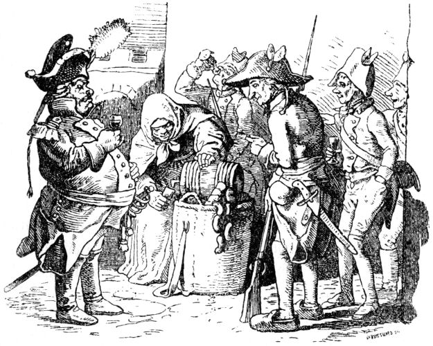 Des Königs Räte, so den schlafenden Schneider gleichfalls gesehen, taten solches Sr. Majestät, ihrem allergnädigsten König, zu wissen, mit dem untertänigsten Bemerken, daß, so sich kriegerischer Zwiespalt erhebe, dieser Held ein sehr nützlicher Mann werden und dem Lande gute Dienste leisten könne. Dem König gefiel diese Rede wohl, sandte alsbald nach dem geharnischten Schneider, und ließ ihn fragen, ob er Dienste begehre? Der Schneider antwortete, eben deshalb sei er hergekommen, und bäte die Königliche Majestät, wo höchstdieselbe ihn zu brauchen gedächte, ihm allergnädigst Dienste zu verleihen. Der König sagte dem Schneiderlein Dienste zu, verordnete ihm ein stattliches Losament und Zimmer, und gab ihm eine 7 gute Besoldung, von der es, ohne etwas zu tun, herrlich und in Freuden leben konnte.