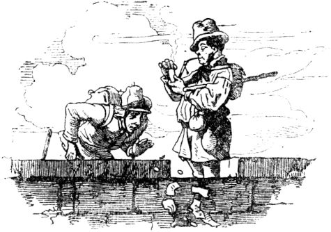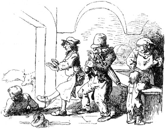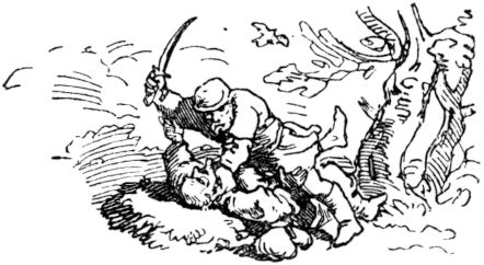lagen, und begann, den einen mit einem derben Steine