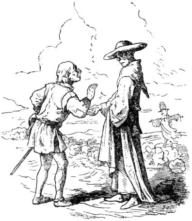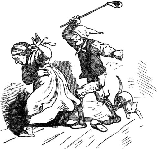 Da währete es nicht lange Zeit, so wurden die Ritter des Königs, die nur eine karge Löhnung hatten, dem guten Schneider gram, und hätten gern gewollt, daß er beim Teufel wäre, fürchteten zumal, wenn sie mit ihm uneins würden, möchten sie ihm nicht sattsam Widerstand leisten, da er ihrer sieben allwege auf einen Streich totschlagen würde, sonsten hätten sie ihn gern ausgebissen, und so sannen sie täglich und stündlich darauf, wie sie doch von dem freislichen Kriegsmann kommen möchten. Da aber ihr Witz und Scharfsinn etwas kurz zugeschnitten war, wie ihre Röcklein, so fanden sie keine List, den Helden vom Hofe zu entfernen, und zuletzt wurden sie Rates miteinander, alle zugleich vor den König zu treten, und um Urlaub und Entlassung zu bitten, und das taten sie auch.