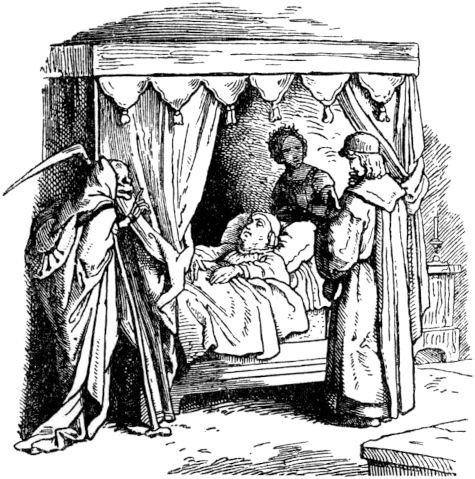 Nun war in demselben Lande ein König, dessen Lob weit und breit erschallte, zu dem begab sich der faule Schneider, der gleich nach seiner Heldentat Nadel, Schere und Bügeleisen an den Nagel gehangen, trat in den Hof des Königspalastes, legte sich alldort in das Gras und entschlief. Die Hofdiener, so aus- und eingingen, den Schneider in dem reichen Harnisch sahen, und die Goldschrift lasen, verwunderten sich sehr, was doch jetzt, zu Friedenszeiten, dieser streitbare Mann an des Königs Hof tun wolle? Er deuchte sie ohne Zweifel ein großer Herr zu sein.