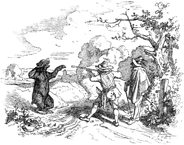 Als der Schneider von seinem Baume sahe, daß die beiden Riesen einander totgeschlagen hatten, ward ihm besser zumute, als ihm jemals gewesen, stieg fröhlich vom Baume, hieb mit seinem Schwerte jeglichem Riesen eine Wunde oder etliche, und ging aus dem Walde hervor zu den Reitern. Die fragten ihn, ob er die Riesen entdeckt oder ob er sie nirgends gesehen habe? „Ja,“ sagte der Schneider, „entdeckt und gesehen und alle zwei totgeschlagen — habe ich, und sie liegen lassen unter einem Baume.“ Das war den Reitern verwunderlich zu hören, konnten und wollten’s nicht glauben, daß der eine Mann 10 so unverletzt von den Riesen sollte gekommen sein, und sie noch dazu totgeschlagen habe, ritten nun selbst in den Wald, dies Wunder zu beschauen, und fanden es also, wie der Schneiderheld gesagt hatte. Darob verwunderten sich die Reiter gar sehr, und empfanden einen grauslichen Schrecken, ward ihnen auch noch übler zumute denn vorher, da sie fürchteten, der Sieger werde sie alle umbringen, wenn er ihnen feind würde; ritten heim und sagten dem König an, was geschehen.
