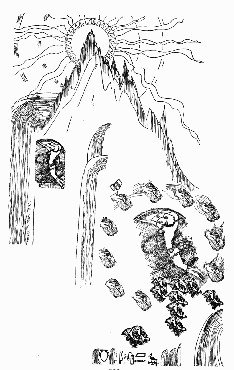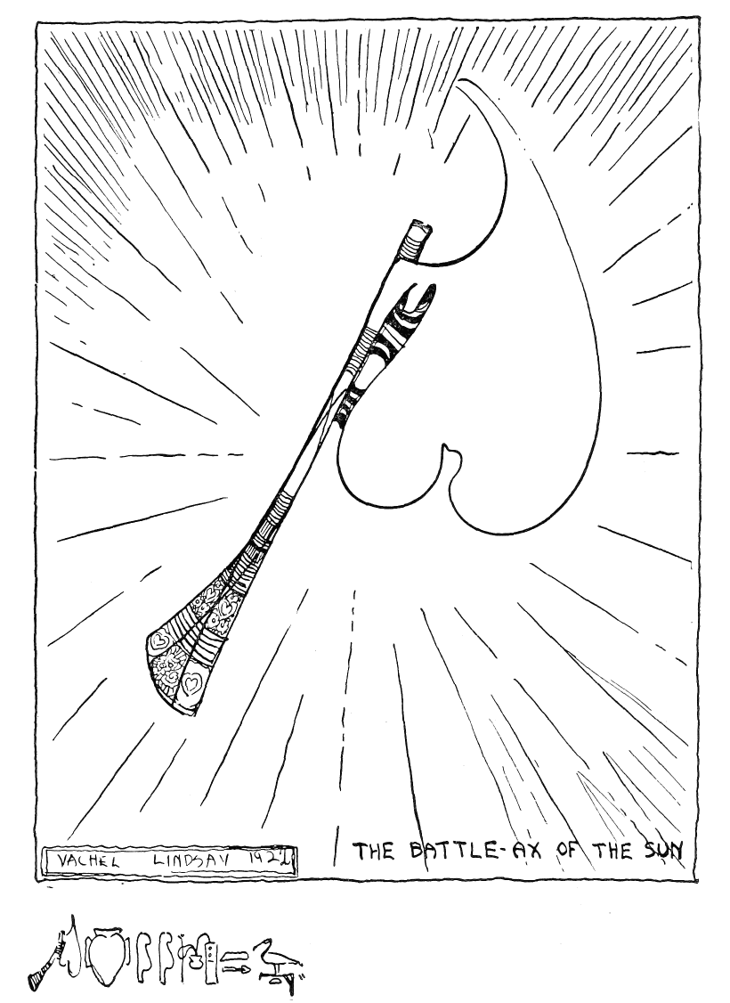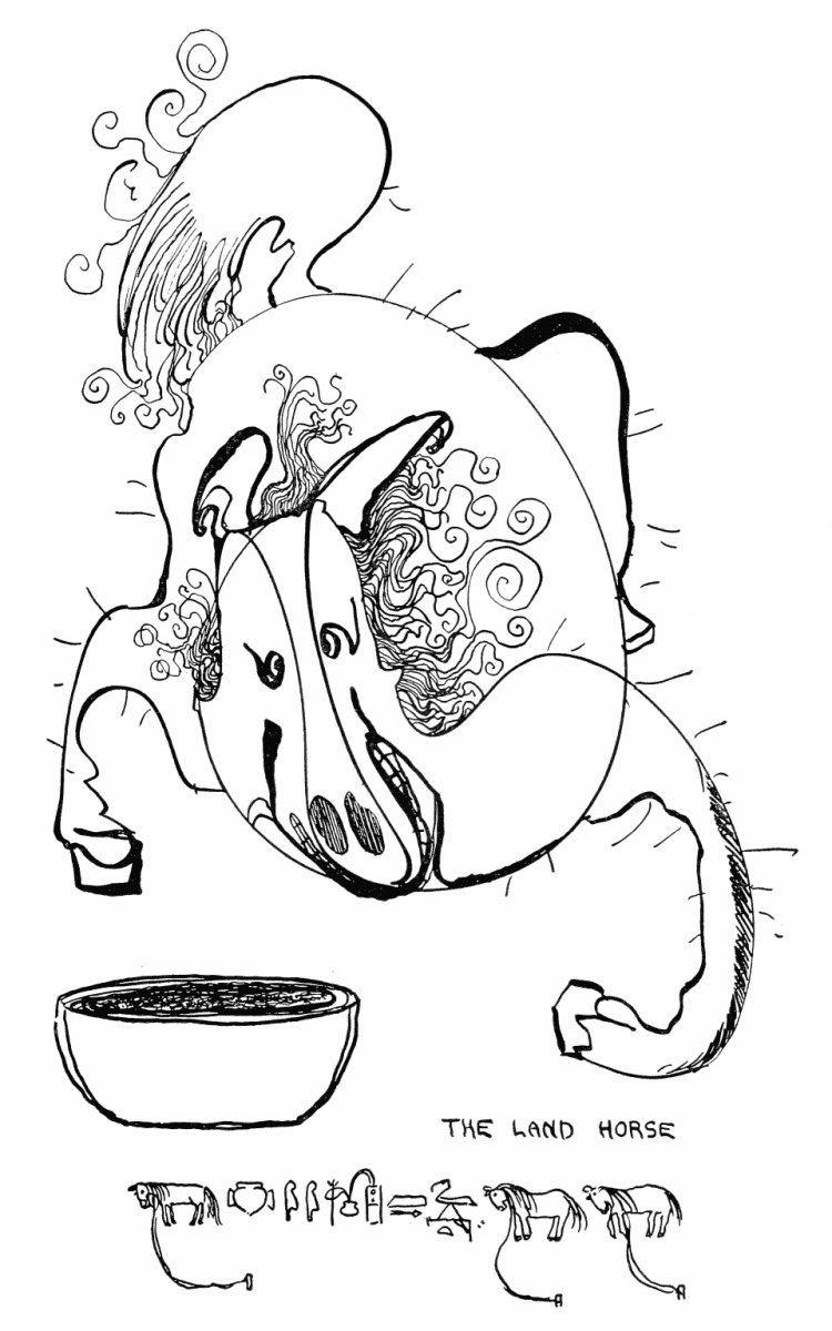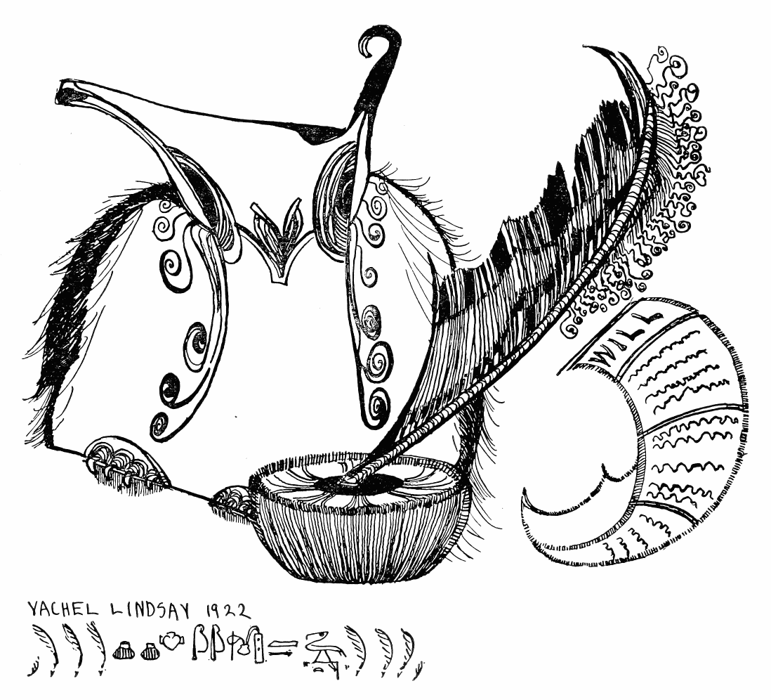The Hieroglyphics in this work are based on two more British-Egyptian grammars he sent me after he reached London. Still, they may be described as United States Hieroglyphics, and almost any Egyptologist will be willing to describe them that way, having about as much to do with Egypt as Egyptian cigarettes. The Egyptians were, briefly, a nation of Vernon Hills, who drew their “Arcadian Calendar” for four thousand years in red and black ink, or cut it in granite. I keep thinking about them! A free translation of the hi{6}eroglyphic inscription at the bottom of the first picture following is: