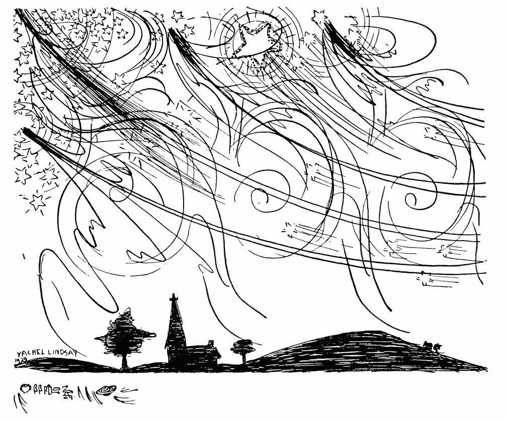 Stephen Graham is a lifetime friend, and I have assembled these drawings as a sign thereof. But because I have been studying Hieroglyphics in the Metropolitan Museum all this summer, and because United States Hieroglyphics of my own invention are haunting me day and night, this book is drawn, and not written. I serve notice on the critics—the verses are most incidental, merely to explain the pictures. And so, directly considered, it is much more a reply to Vernon Hill, the artist, than to Stephen.