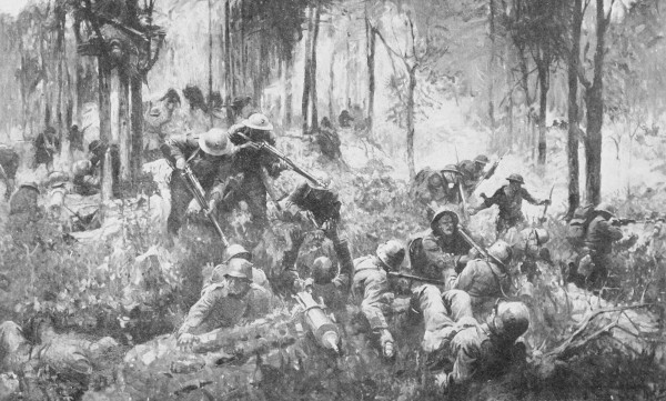 And those who fought each other then were comrades now. "Old wars forgot," Great Britain and France for years had held the lines, and America was taking its place beside them, throwing all its power and strength with them against the common foe. From Yorktown went the first United States forces, ordered overseas just after war began. Sent to England's aid, to serve with the British forces, their arrival was hailed as the beginning of a new era in the relations of the nations—the "Return of the Mayflower." And later went huge dreadnaughts to the North Sea, joining the Grand Fleet in the mightiest aggregation of naval power the world has ever seen.