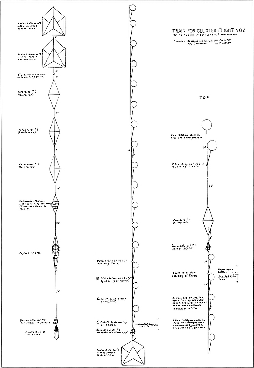 | Drawing of Project Mogul Balloon Train. | |